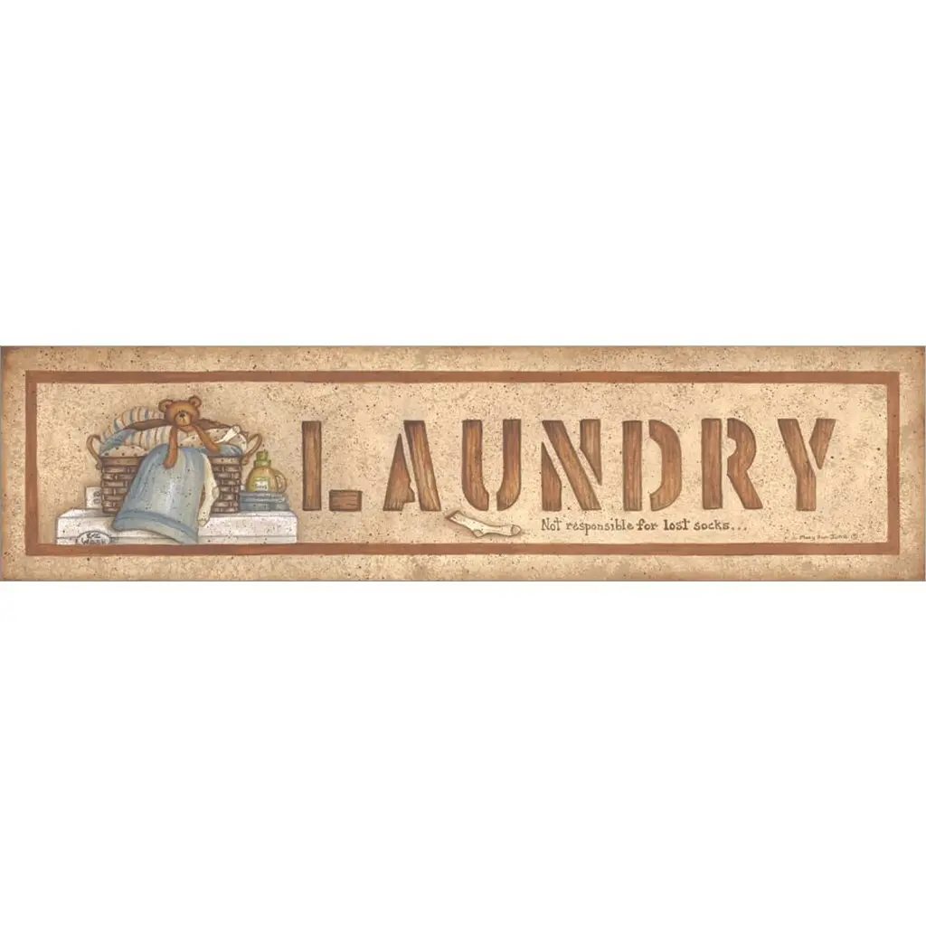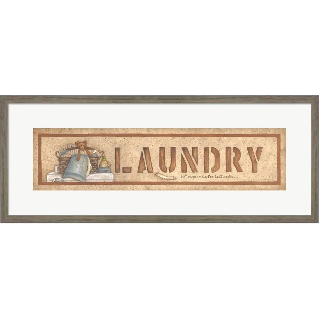 Laundry by Mary Ann June is a high quality piece of framed artwork. The finished size of this piece is 30" x 12". It has a Distressed Grey Knotty Wood frame, White mat and is finished with high quality Acrylic Plexiglass. 100% Satisfaction Guaranteed.
