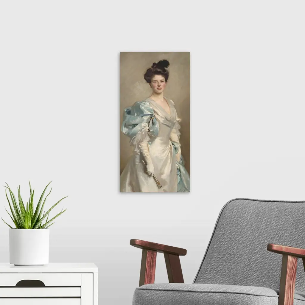 Mary Crowninshield Endicott Chamberlain, by John Singer Sargent, 1902, American painting, oil on canvas. She was married to British statesman, Joseph Chamberlain, in 1888. The portrait captures the elaborate mutton chop sleeves on the evening gown of a we