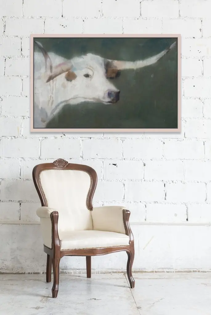 Seen first at One Kings Lane: This longhorn portrait from Mary H. Case adds a bucolic note to any space. A fine reproduction of the original work, this piece is printed on gallery-wrapped canvas and displayed in a white pine frame. Arrives ready to hang.A native of Gulfport, Mississippi, Mary H. Case currently lives in Houston, Texas and has shown in exhibitions throughout the United States. Her work has a wide range of subjects, including figurative landscapes, portraits, and animal drawings inspired by her cousin’s longhorn herd and the pastures surrounding the backroads of Houston.