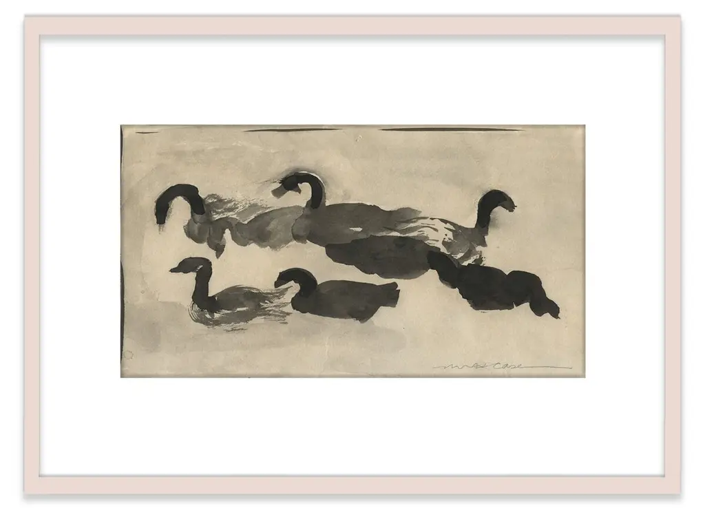 Exclusive to One Kings Lane: A drawing of geese from Mary H. Case is reproduced here on fine-art paper, matted, and displayed in a carved black frame. A lovely addition to any decor, this piece arrives ready to hang.