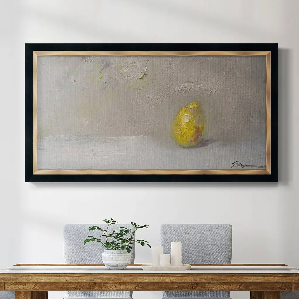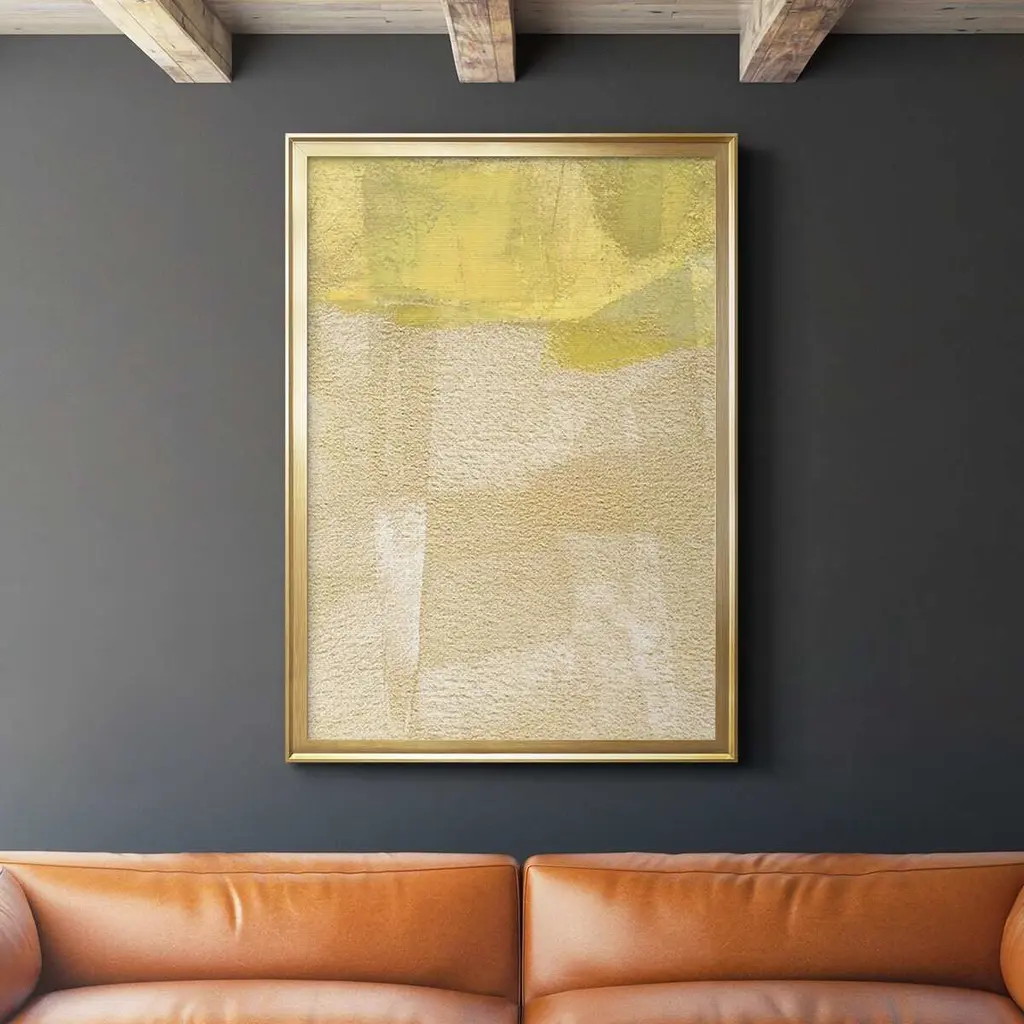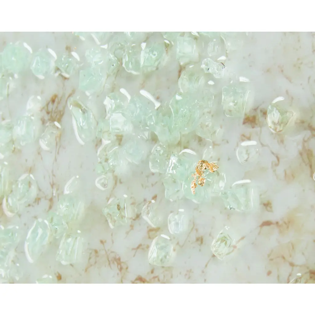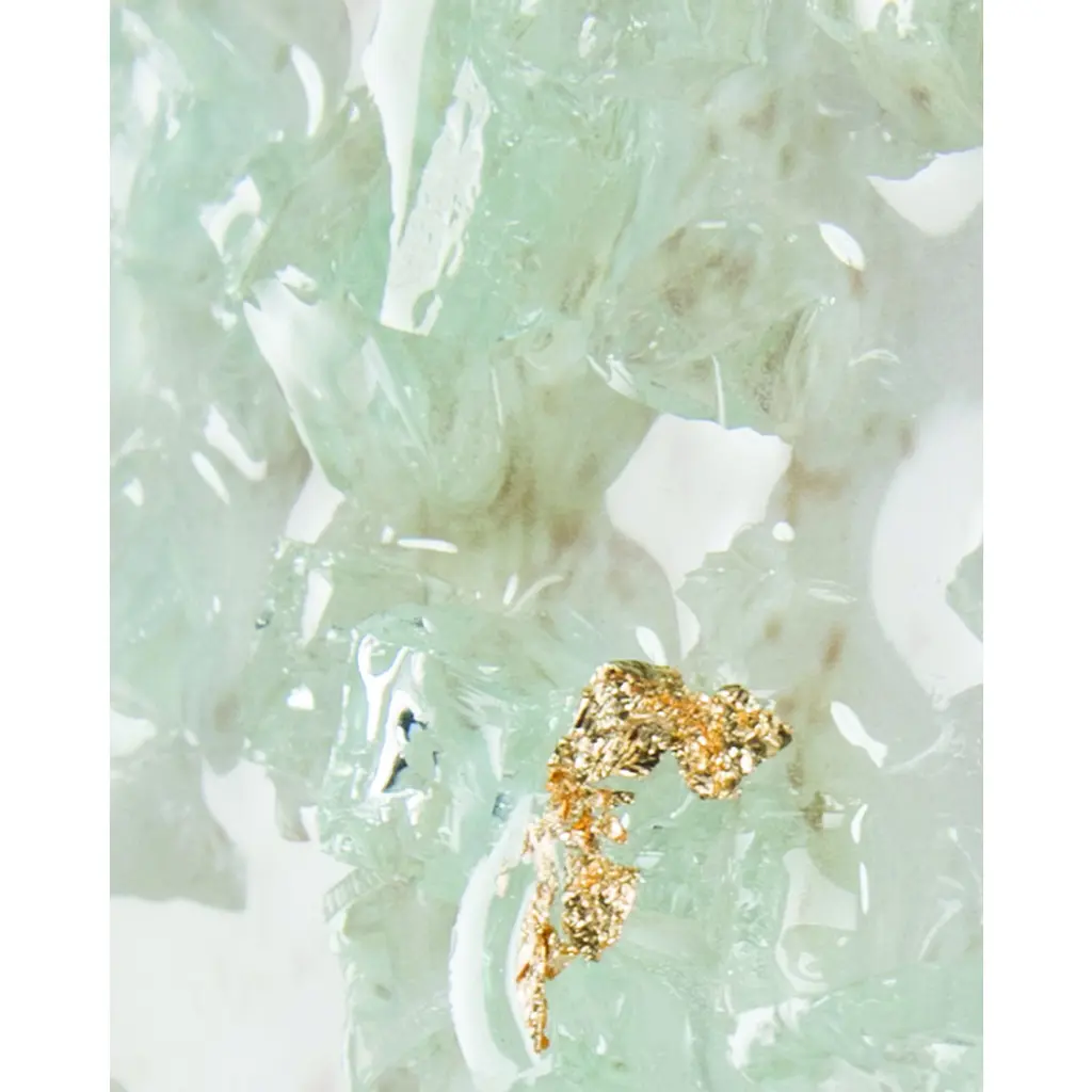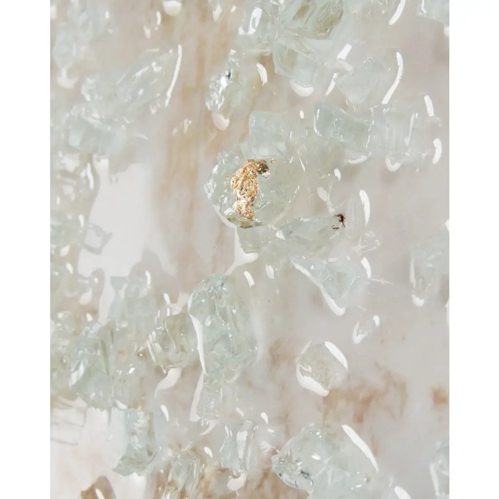 49"W X 49"H X 2.5"D This stunning canvas by Mary Hong is touched with tones of bronze. Highlighted with her signature broken glass and high-gloss vitreous finish, this piece is finished with a bronze-edged gallery molding with a golden interior.