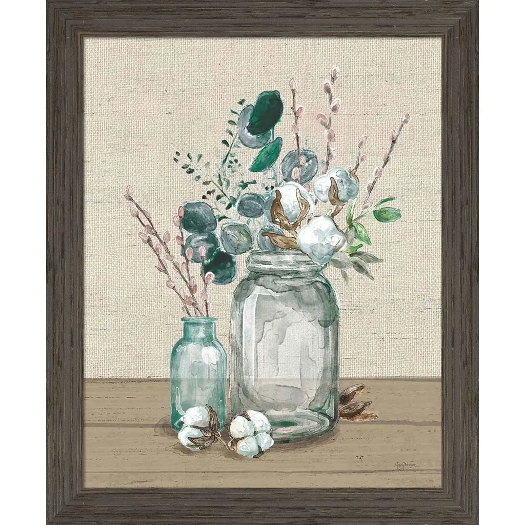 Cotton Bouquet II No Pattern by Mary Urban is a high quality piece of framed artwork. The finished size of this piece is 19" X 23". It has a Weathered White Washed Deep Gray frame and is finished with high quality Acrylic Plexiglass. 100% Satisfaction Guaranteed.