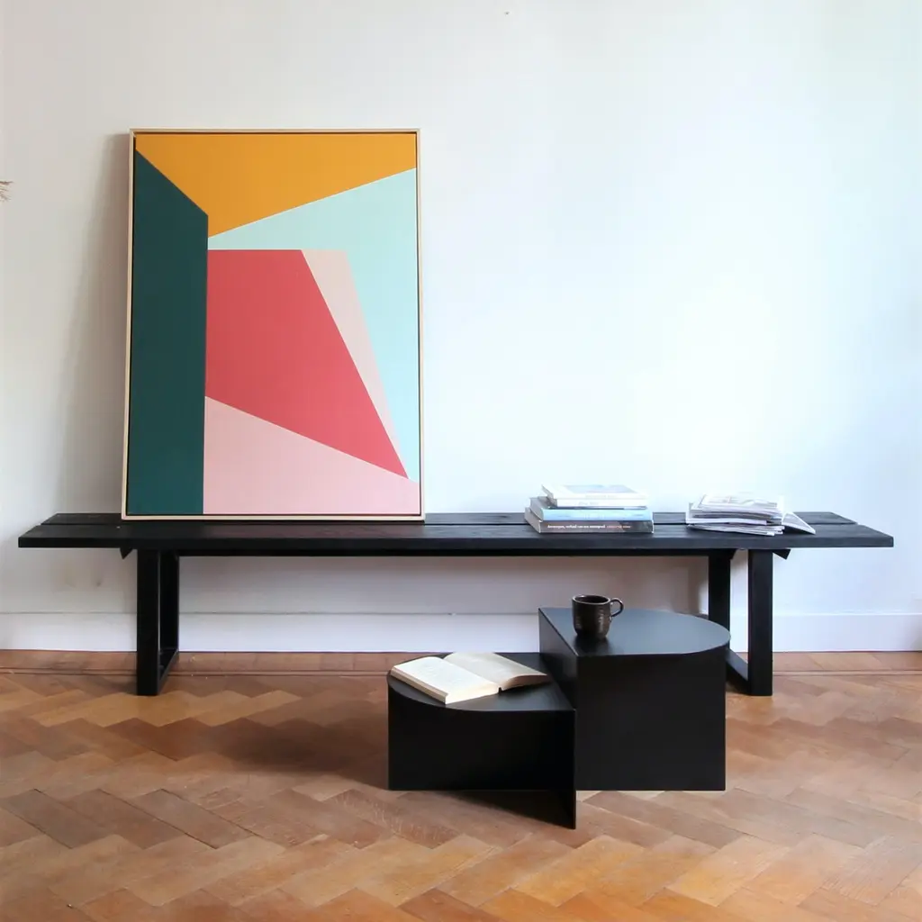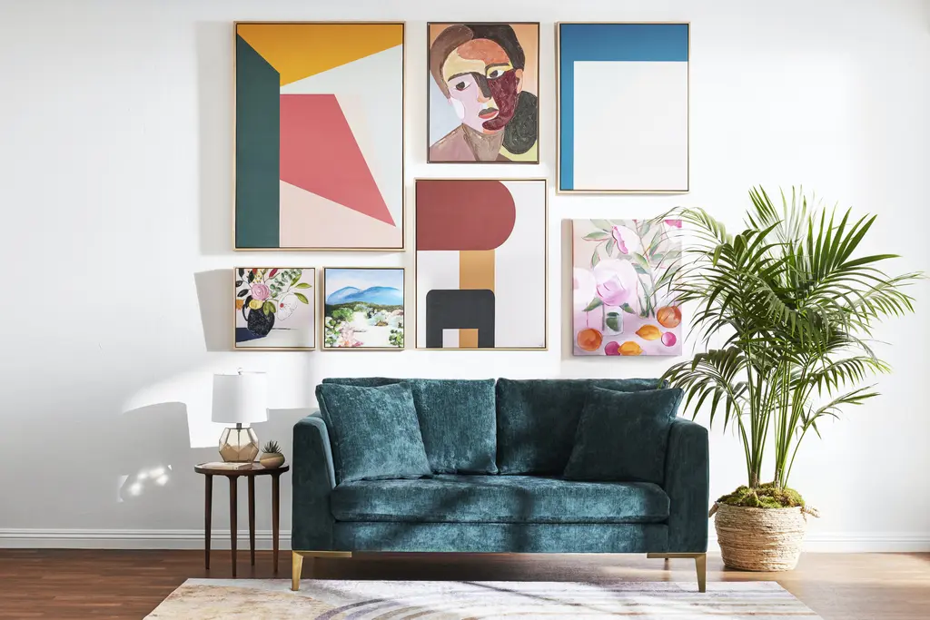 Modern and abstract, the Masey wall arts combines clean lines and bright colors in mustard, green, blue and light and dark pink hues for the ultimate statement piece for your walls.Details and product care +DimensionsMeasure for deliveryOverall35.5"w x 1.5"d x 47"h