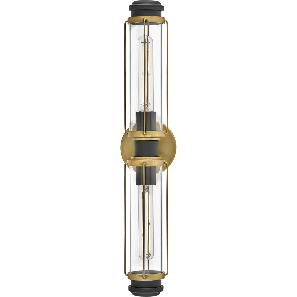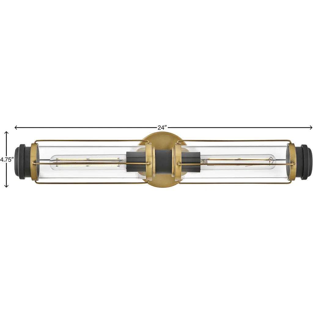 Masthead 2 Light 24 Inch Heritage Brass With Black Vanity Light Wall Light