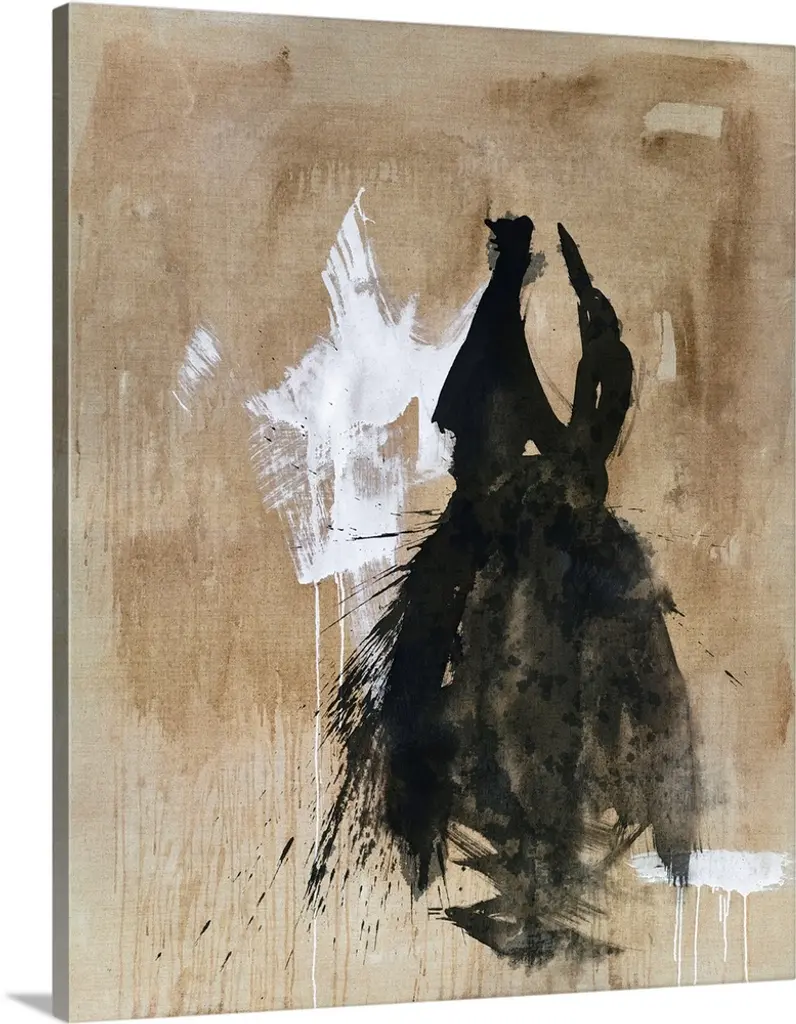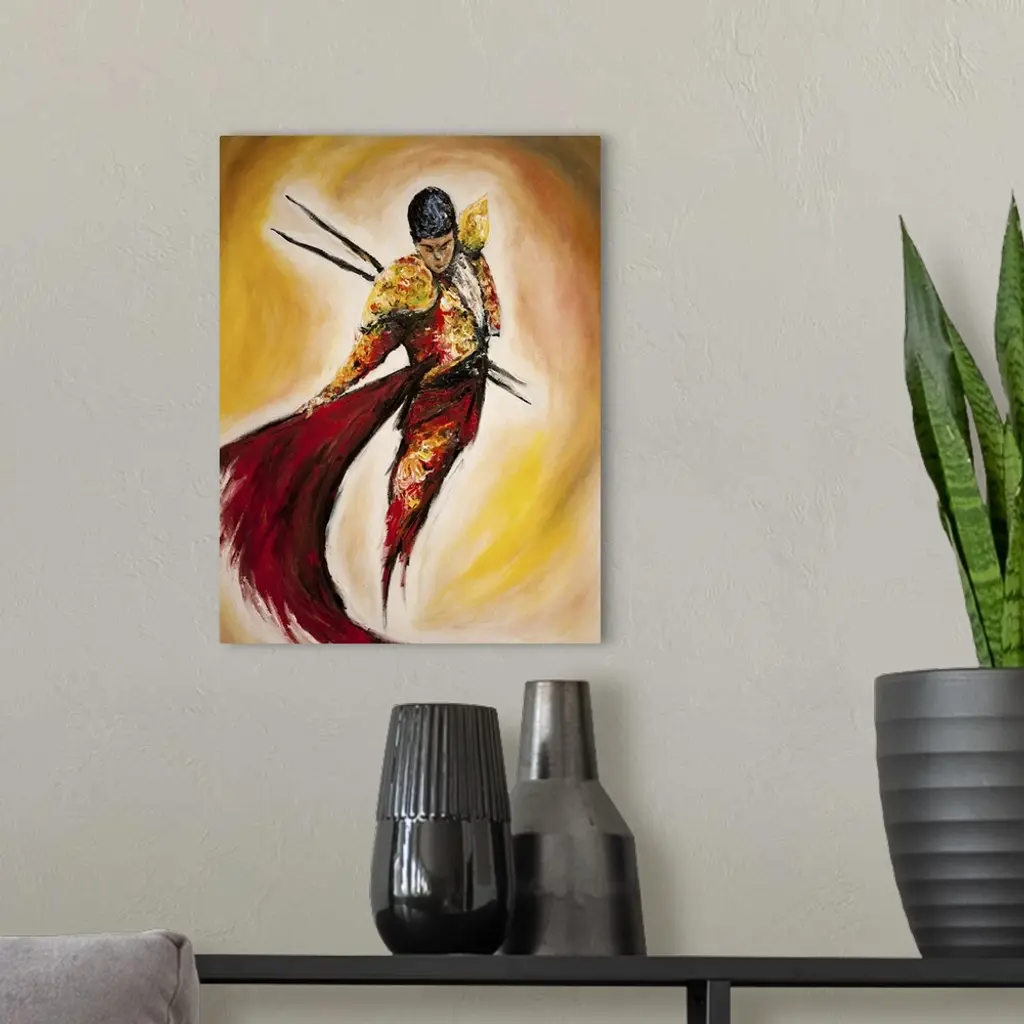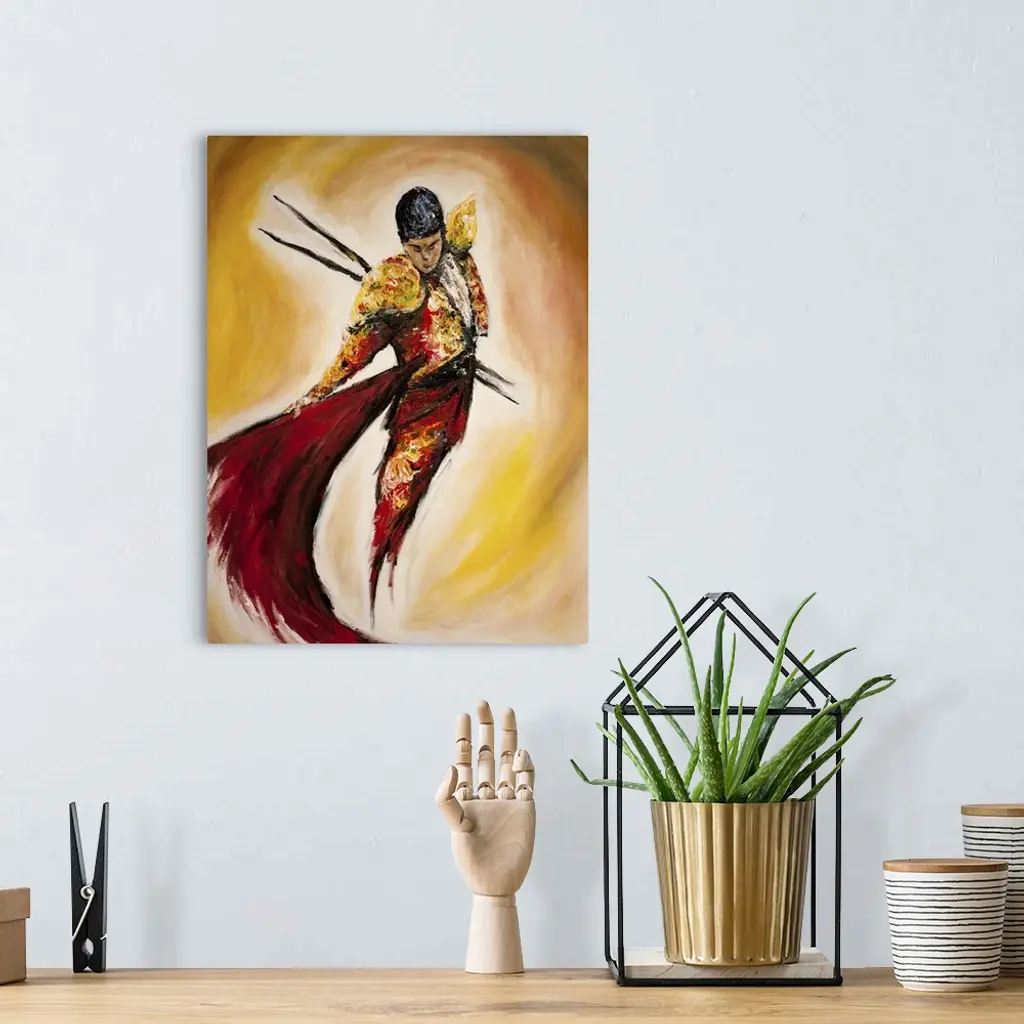 Watercolor and ink painting of a matador with a red cape for a bullfight.