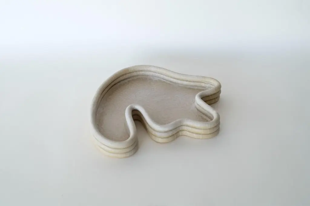 Mate cracked Sage Lali small Vide Poche by Sophie ParacheyDimensions: W 28 x D 24 x H 3.5 cmMaterials: Stoneware.Inspired by extended stays in Central America, Sophie Parachey’s work questions transformation, the antagonism between the ancestral and the modern, and our relationship to the living world. Sophie intentionally handcrafts her ceramic artwork in stoneware or handpicked clay. Each piece expresses itself with its curves, textures, and resonances. Rough or smooth, they embody a paradoxical realm. Unrefined and primitive forms,reminiscent of organic magma flow, blend with softer, delicate, and more subtle shapes. A new balance seems to emerge from this surprising combination.