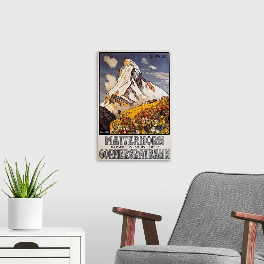Matterhorn Travel Poster by Francois Gos wall art for home and office decor. Discover canvas art prints, photos, mural, big canvas art and framed wall art in GreatBigCanvas.com's varied collections.