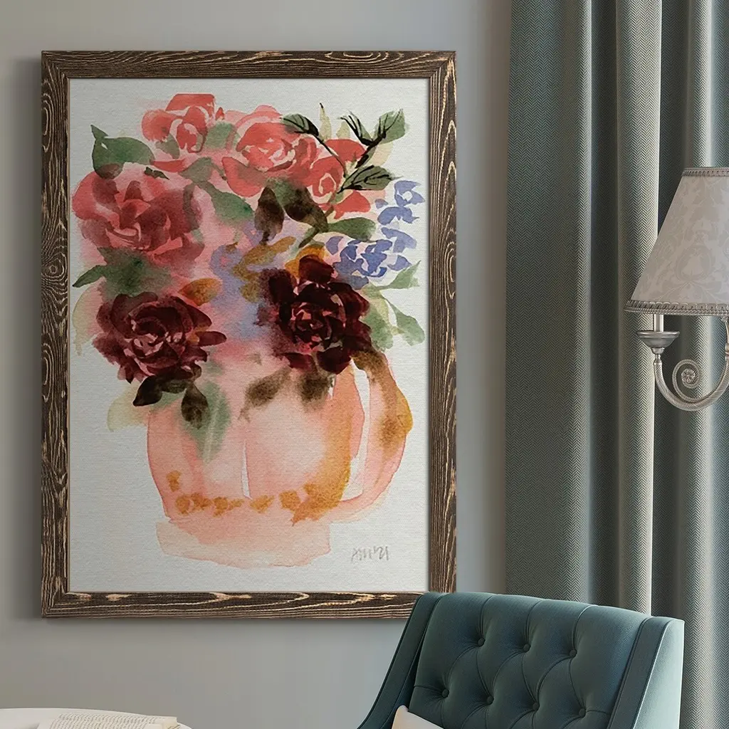Mauve Bouquet in Teapot I Premium Gallery Wrapped Canvas - Ready to Hang A premium hand stretched gallery wrapped canvas print created to last. Featuring a beveled a solid wood stretcher bar, each piece comes ready to hand 6 SIZES AVAILABLE 8''X12'' - Overall Size 12''X18'' - Overall Size 18''X27'' - Overall Size 24''x36'' - Overall Size 32''x48'' - Overall Size 40''x60'' - Overall Size Each piece is made to order. Built to Last Each piece comes ready to hang Solid wood stretcher Fade and Water resistant Made domestically