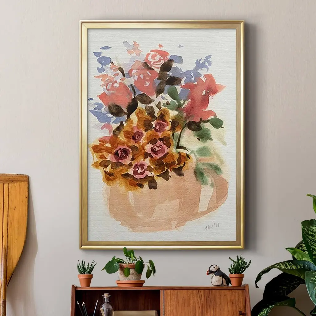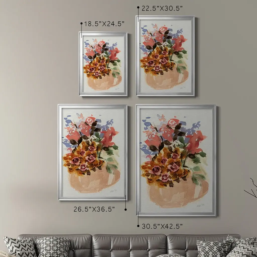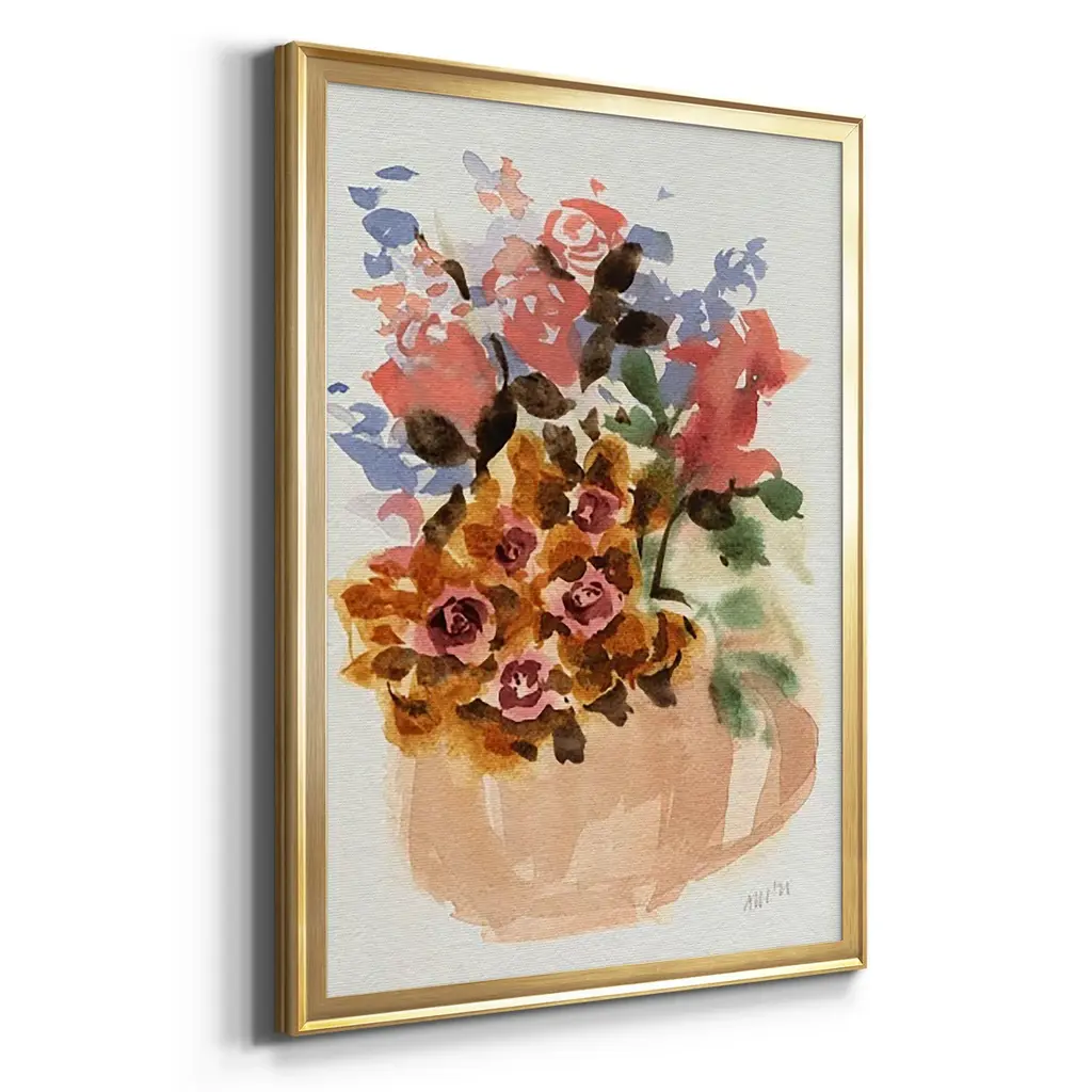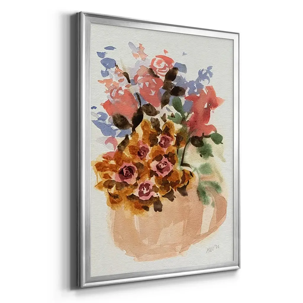Mauve Bouquet in Teapot II Premium Framed Print - Ready to Hang A Premium Framed Print created to last. Framed in distressed wood and available in an array of sizes and colors Featuring a beveled a solid wood stretcher bar, each piece comes ready to hand 4 SIZES AVAILABLE 30.5''X42.5'' - Overall Size 26.5'X36.5'' - Overall Size 22.5''x30.5'' - Overall Size 18.5''x24.5'' - Overall Size Each piece is made to order. Each piece comes with hanging hardware. Made in the USA Ready to Hang