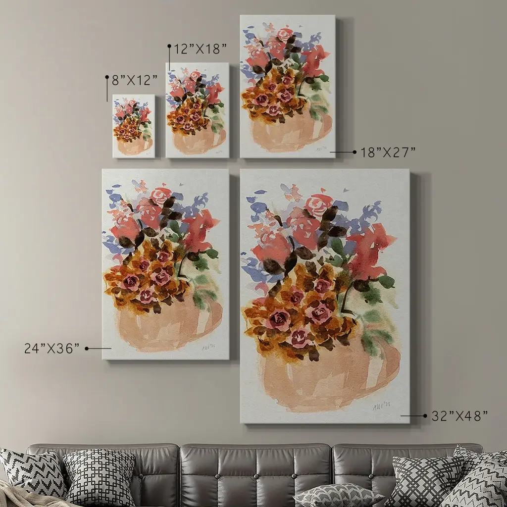 Mauve Bouquet in Teapot II Premium Gallery Wrapped Canvas - Ready to Hang A premium hand stretched gallery wrapped canvas print created to last. Featuring a beveled a solid wood stretcher bar, each piece comes ready to hand 6 SIZES AVAILABLE 8''X12'' - Overall Size 12''X18'' - Overall Size 18''X27'' - Overall Size 24''x36'' - Overall Size 32''x48'' - Overall Size 40''x60'' - Overall Size Each piece is made to order. Built to Last Each piece comes ready to hang Solid wood stretcher Fade and Water resistant Made domestically