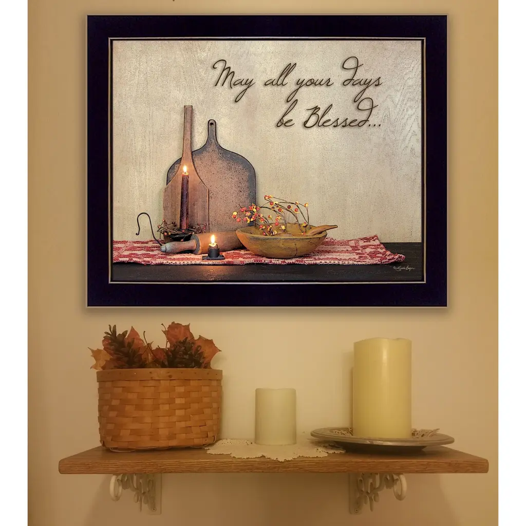 Add an air of fashion to your room and rejuvenate the space with this may all your days be blessed black framed print wall art. This print is a visual artistic expression that allows you to decorate your space in style. Reproduced for you on paper, this hanging decorative accent will be a trendy and fashionable way to dress your walls. Adding this hanging wall art to your space to make your room feel more finished and attractive. Utilize this opportunity to create a focal point in the room with this fabulous wall decor option. 14" H x 18" W x 1" D