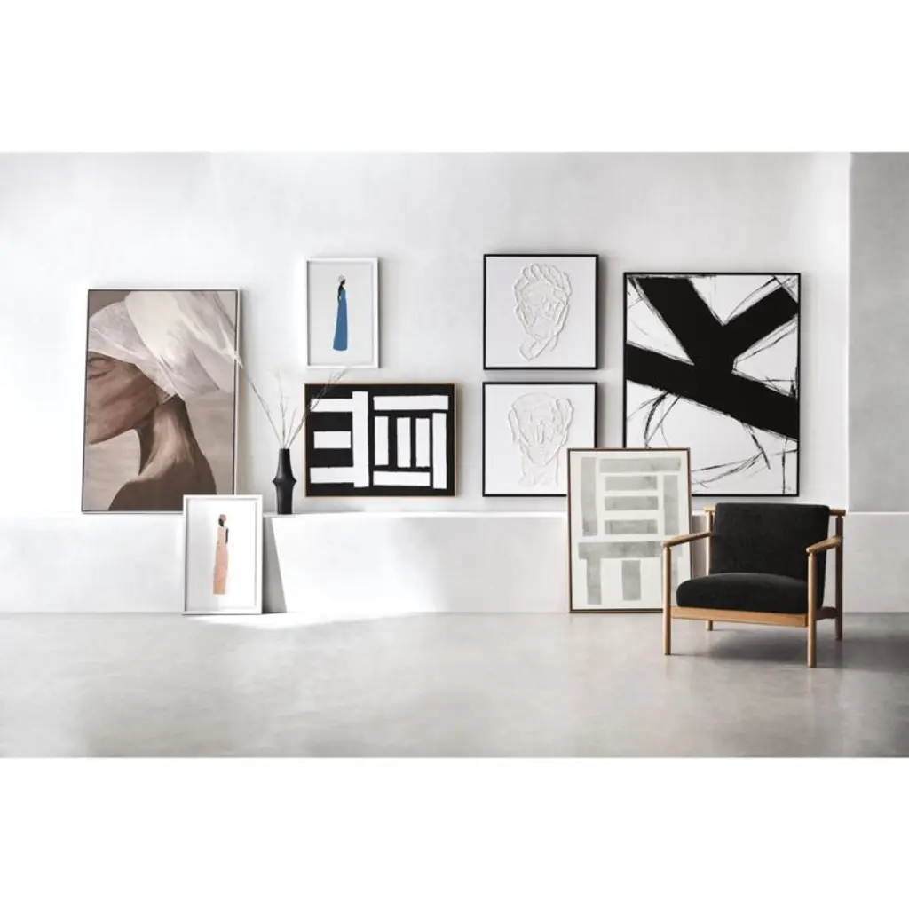 Michel Smith Boyd defies expectations in this dramatically cropped portrait. Almost monochromatic in palette, the painting lures the eye to the sensuous curves of the sitter's neck, the sweeping contours of the cheekbones and the graceful folds and woven texture of the headscarf. Our giclee print of the original acrylic painting is reproduced on canvas and finished with an acrylic gel for added texture.