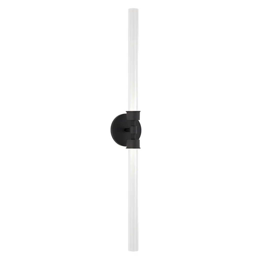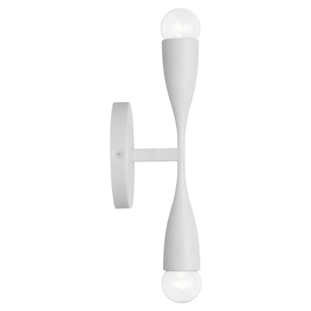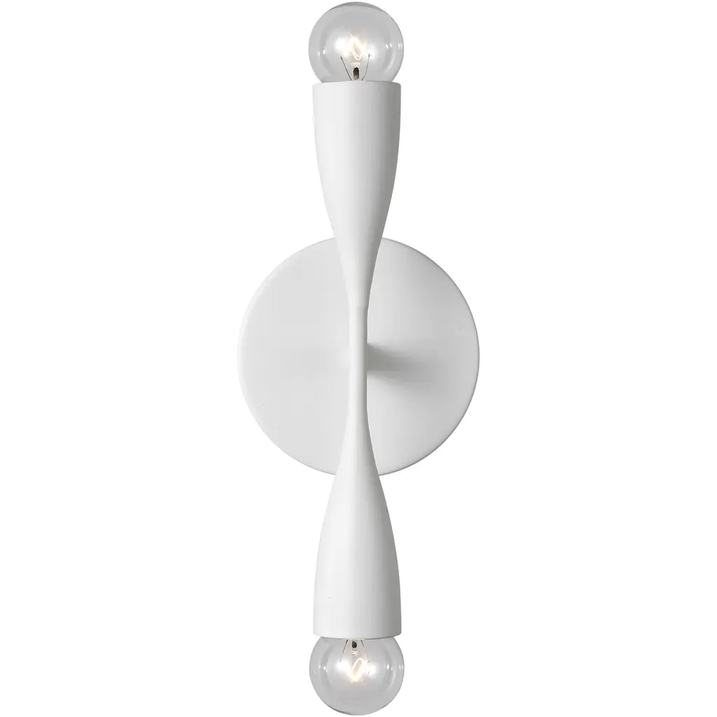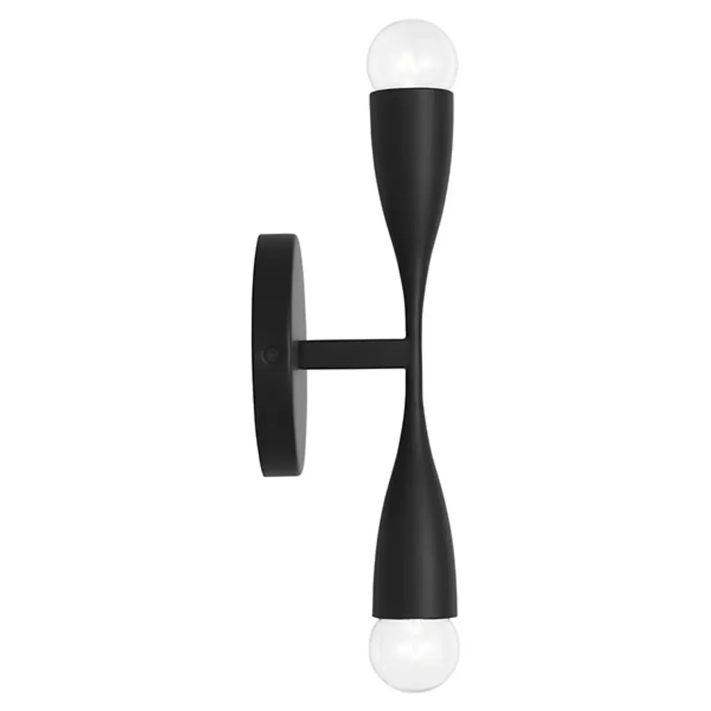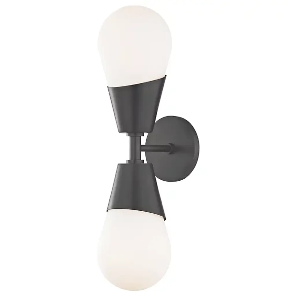 The Maya Vanity Light from Generation Lighting integrates metal shades directly into the fixture's framework, where curved elements cradle exposed bulbs rather than concealing them. This organic approach creates a fluid connection between structure and function, allowing the metal framework to flow around each light source. The fixture can be mounted either horizontally or vertically to accommodate different spatial requirements. The exposed bulb design allows for lamp selection to be an aesthetic choice, and the fixture features dimming capability for atmospheric control.