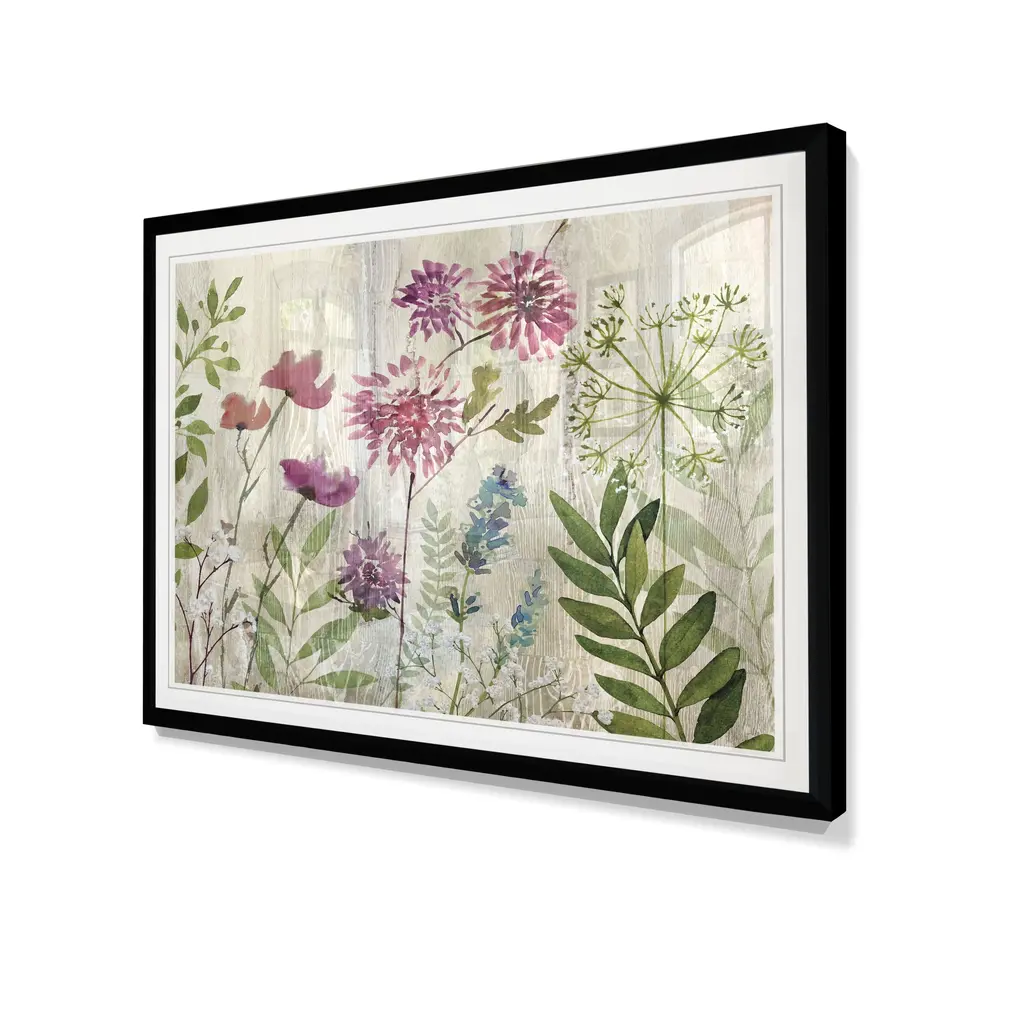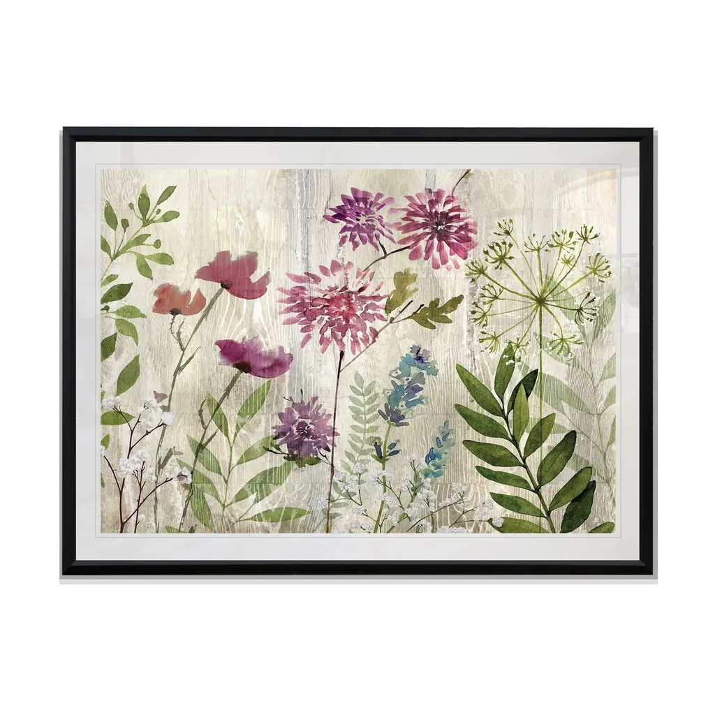 Meadow Flowers II-Framed Giclee Print A premium framed giclee print Printed using the last archival inks. Each print is carefully printed and framed by hand. Each piece features a 2'' Beveled matt board, acrylic glass and comes ready to hand. 4 SIZES AVILABLE 18''X24''- Overall Size 22''x30''- Overall Size 26''x26''' - Overall Size 30''x42''' - Overall Size ** Overall size may vary slightly from piece to piece Each piece is made to order. Built to Last Each piece comes ready to hang Archival Ink 2'' Matt Board Assembled by hand in the America
