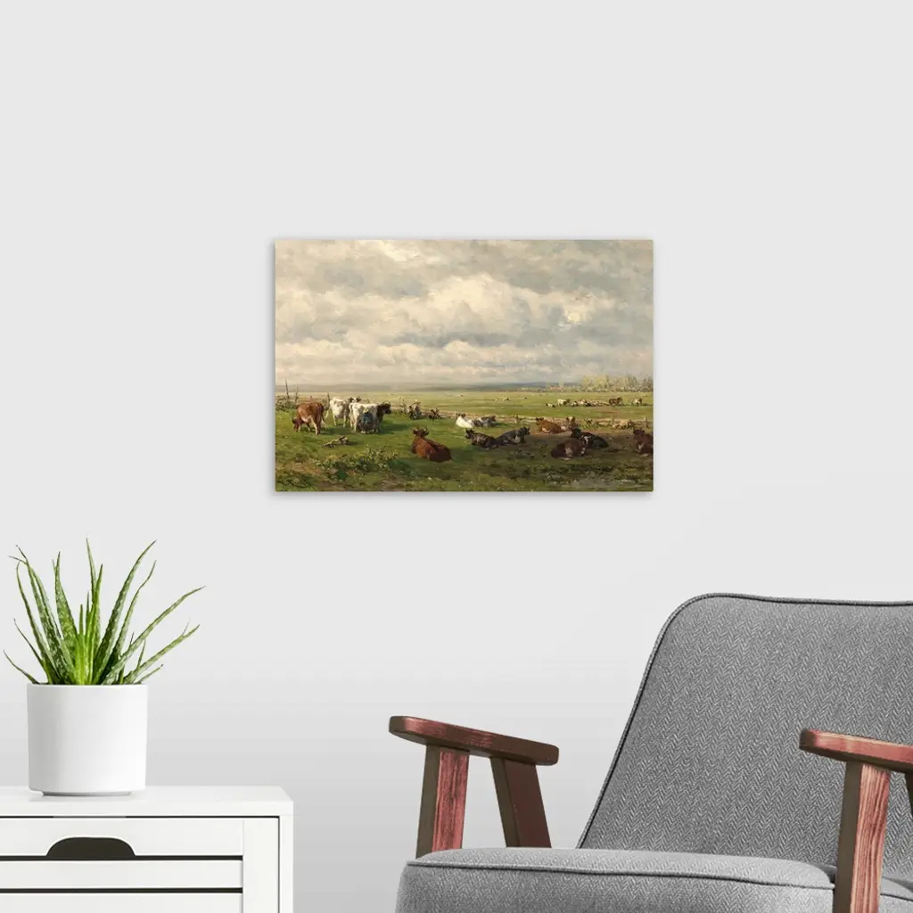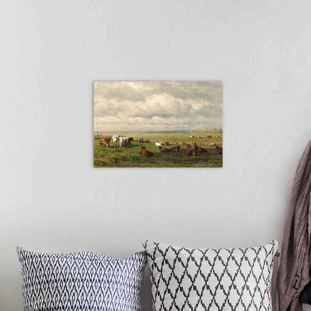 Meadow Landscape With Cattle, C. 1880, Dutch Painting, Oil On Canvas
