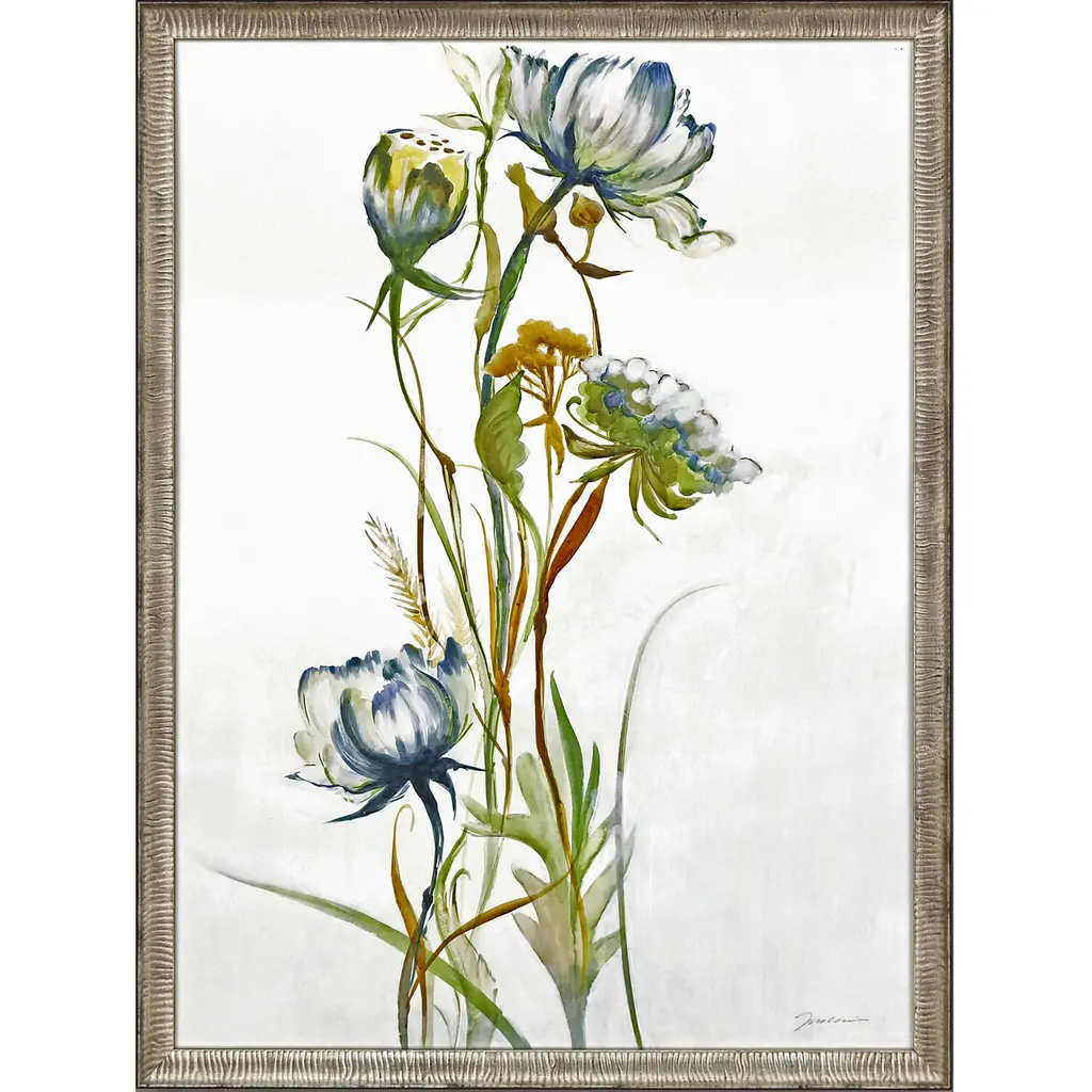 Unique and decorative, this meandering flowers i 1 white framed print wall art will leave a lasting impression. This print is a visual artistic expression that allows you to decorate your space in style. Reproduced for you on paper, this hanging decorative accent will be a trendy and fashionable way to dress your walls. Hang on your wall to add some up to date fashion and decoration. Instantly liven up your space with this art that brings color and dimension to your walls. 27" H x 21" W x 1" D
