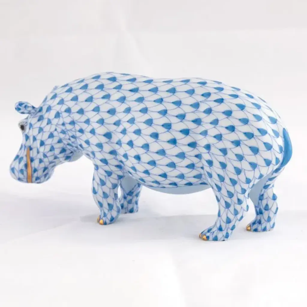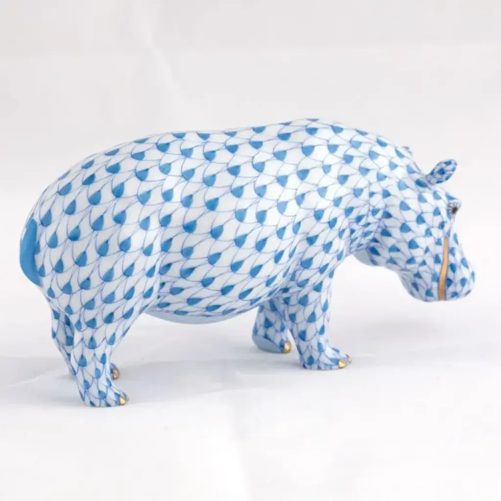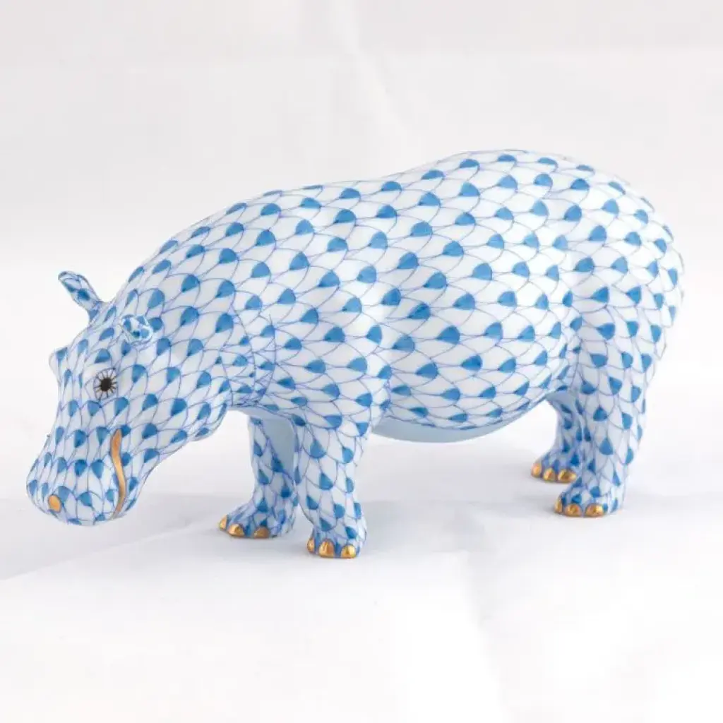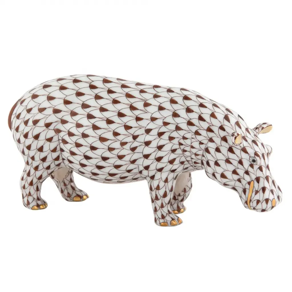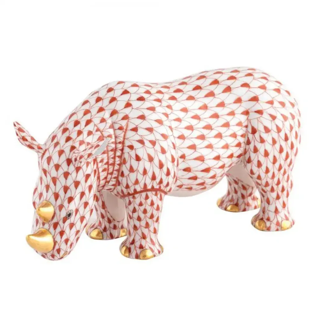 Endearing animals meek and bold, large and small, demure and majestic eagerly await the chance to melt your heart and warm your home. Each is brought to life by the skilled hands of artisans crafting and painting these charming porcelain creatures. The famous fishnet décor adorning many of the animals took form in 1858 when a Herend painter became inspired by a fishscale design he saw on a Chinese porcelain plate and painted a similar pattern onto a rooster figurine to imitate feathers. The rest is history, with the fishnet design now a Herend signature prized worldwide. Now the biggest porcelain manufactory in Europe, Herend was founded in 1826 to produce earthenware in the small Hungarian village for which it was named. At the time, Hungary was flooded with low-cost pottery, but in 1839, Mor Fischer became the Manufactory’s new owner and he decided to focus on producing dinnerware replacement pieces for Europe’s royal families to complement their valuable porcelain patterns from Germany and the Far East. As his client base grew, Fischer commissioned his artists to begin designing dinnerware patterns of their own. Queen Victoria’s 1851 purchase of a large set for Windsor Castle was a milestone, setting the stage for aristocrats throughout Europe to clamor for Herend in their estates. In the 1850s, Herend added meticulously-crafted figurines to its creations. Herend’s trademark fishnet pattern, which is widely recognized and prized as Herend’s signature design, started in 1858 when an artist who was intrigued with a Chinese plate’s fish scale design painted it onto a rooster figurine to imitate feathers.