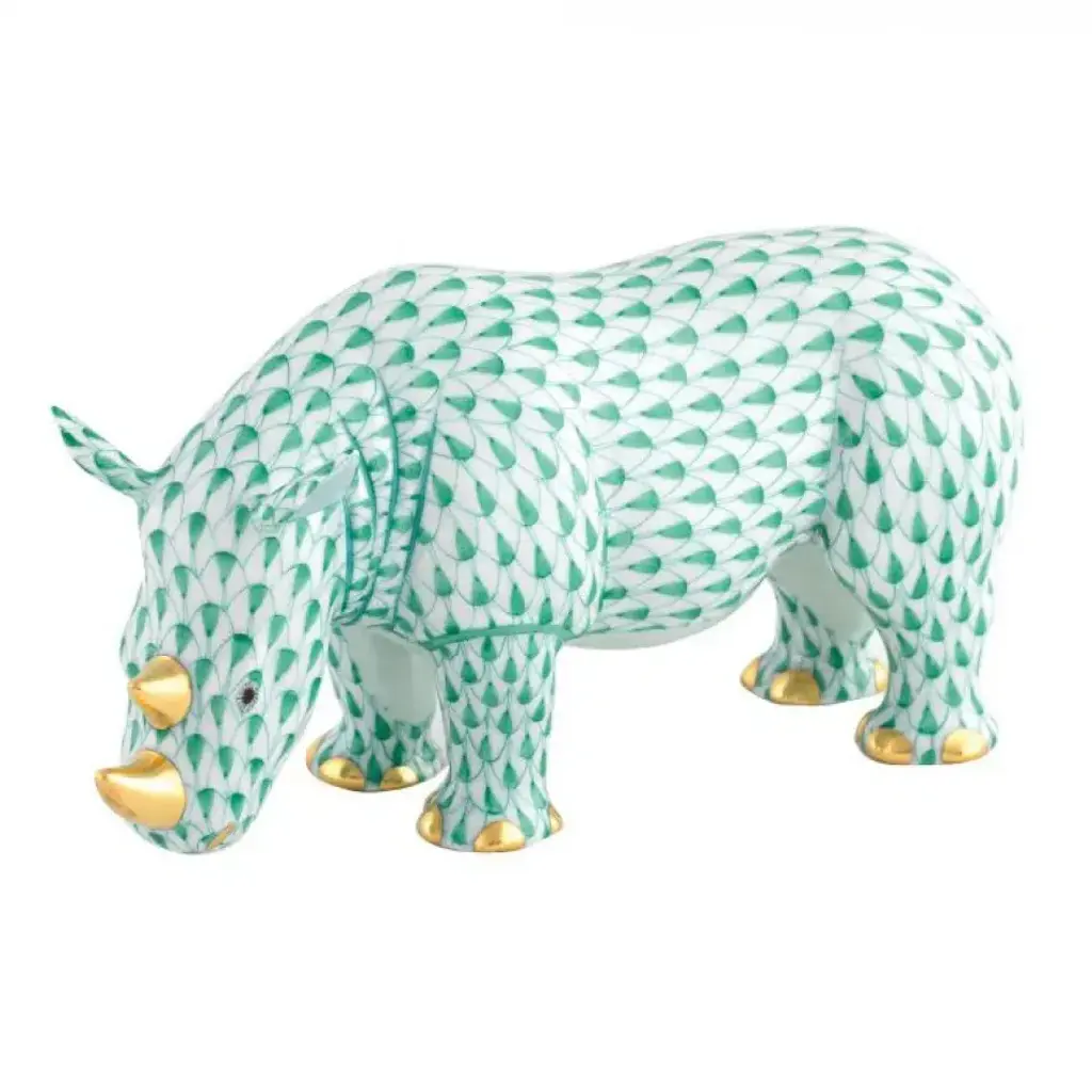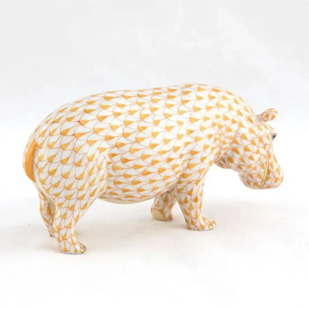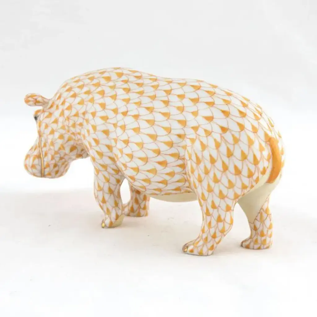 Endearing animals meek and bold, large and small, demure and majestic eagerly await the chance to melt your heart and warm your home. Each is brought to life by the skilled hands of artisans crafting and painting these charming porcelain creatures. The famous fishnet décor adorning many of the animals took form in 1858 when a Herend painter became inspired by a fishscale design he saw on a Chinese porcelain plate and painted a similar pattern onto a rooster figurine to imitate feathers. The rest is history, with the fishnet design now a Herend signature prized worldwide. Now the biggest porcelain manufactory in Europe, Herend was founded in 1826 to produce earthenware in the small Hungarian village for which it was named. At the time, Hungary was flooded with low-cost pottery, but in 1839, Mor Fischer became the Manufactory’s new owner and he decided to focus on producing dinnerware replacement pieces for Europe’s royal families to complement their valuable porcelain patterns from Germany and the Far East. As his client base grew, Fischer commissioned his artists to begin designing dinnerware patterns of their own. Queen Victoria’s 1851 purchase of a large set for Windsor Castle was a milestone, setting the stage for aristocrats throughout Europe to clamor for Herend in their estates. In the 1850s, Herend added meticulously-crafted figurines to its creations. Herend’s trademark fishnet pattern, which is widely recognized and prized as Herend’s signature design, started in 1858 when an artist who was intrigued with a Chinese plate’s fish scale design painted it onto a rooster figurine to imitate feathers.