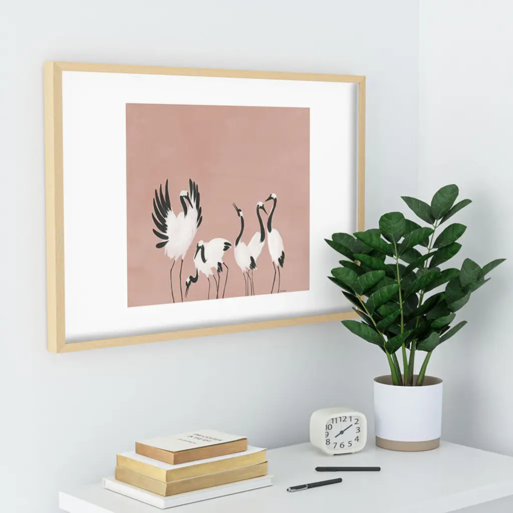 Megan Galante Crane Dance Mauve Pink Recessed Framing Rectangle