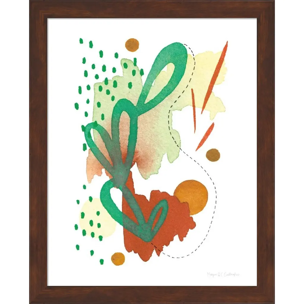 Abstract Day I by Megan Gallagher is a high quality piece of framed artwork. The finished size of this piece is 18" X 22.25". It has a Slim Solid Pecan Brown Flat with Satin Finish frame and is finished with high quality Acrylic Plexiglass. 100% Satisfaction Guaranteed.