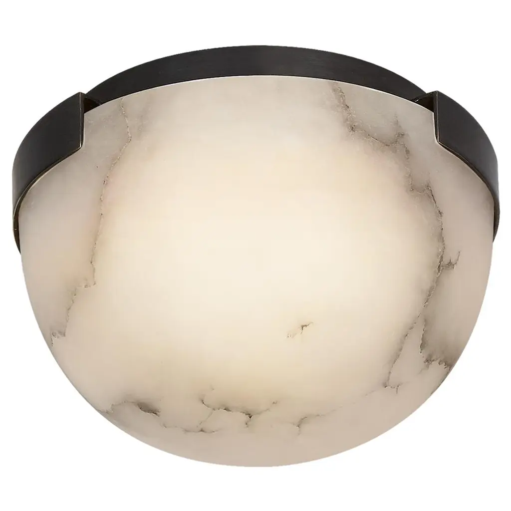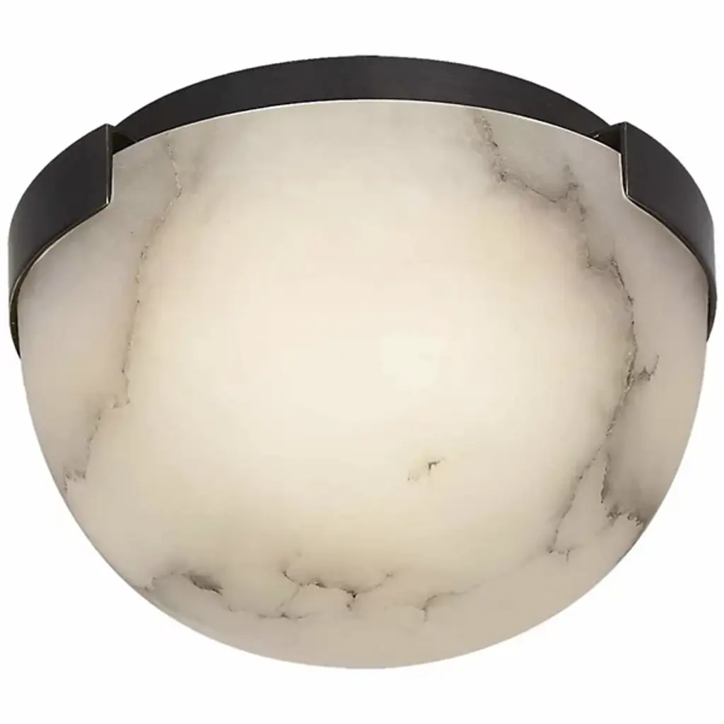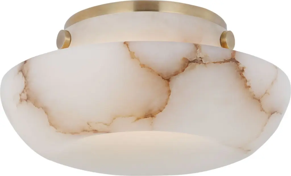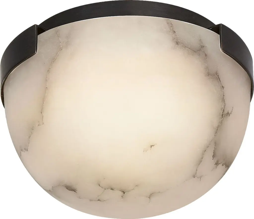 The Melange Petite LED Flushmount from Visual Comfort Signature, formerly known as Visual Comfort, decorates the room in the off or on setting with a painterly mix of tones, textures, and contours. Fitting of its ‘petite’ name, the piece’s low-profile canopy lets it slot over a short hallway or intimate room. The metal canopy gives the piece a handsome accent with its clean edges and rich finish. The alabaster dome shade reduces glare by hiding the lamping. This shade presents a unique visual across the room, one defined by watercolor-like tones and sketch-like lines. Bright light projects the soft, organic quality of the shade into the room for a filling, comfortable glow.