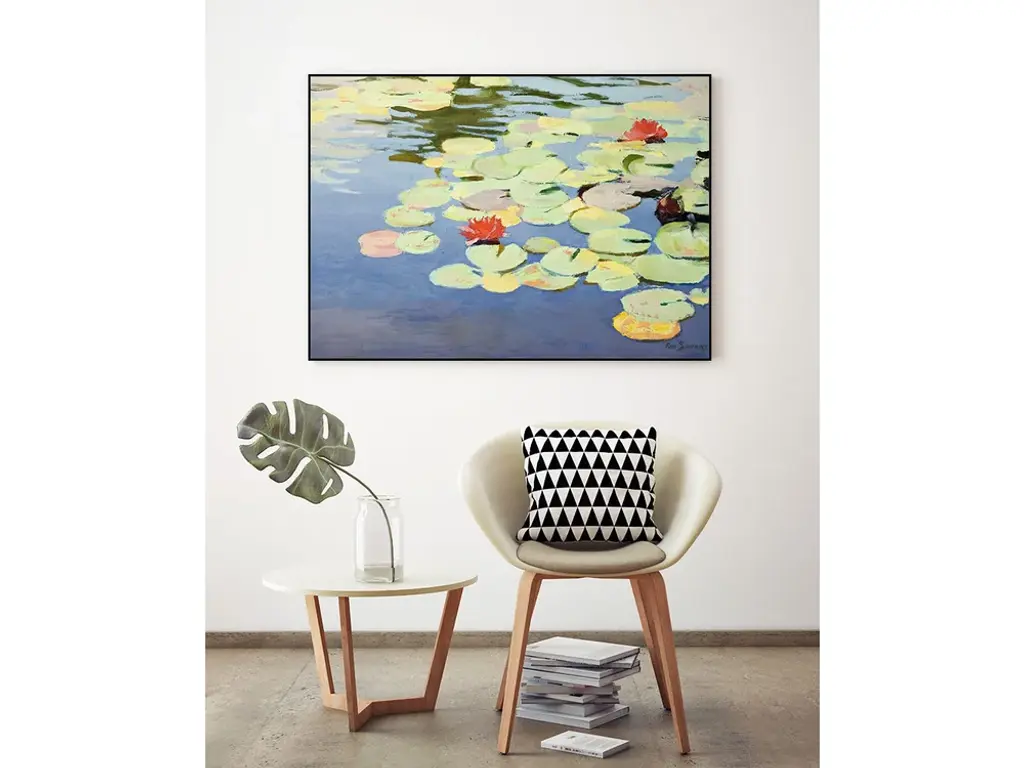 Your ready to hang artwork is printed on canvas then stretched and mounted to a 2 inch-thick, hand-stained black wood frame. Arrives at your door complete with an easy to use self-leveling hanging kit.