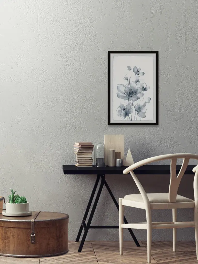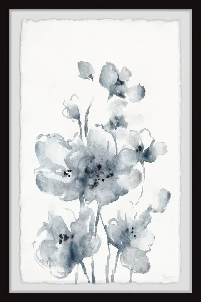 Sophisticated and serene, this watercolor painting print features beautiful blooming flowers in a gray, black and white color scheme. Proudly printed in the USA, this piece is printed on high quality archive paper and professionally hand-framed. With wall-mounting hooks included, this artful accent is ready to hang up as soon as it reaches your front door.Canadian artist, Parvez Taj uses water paints, photographs, software, and UV cured inks to create his wall art. His artwork connects the out-of-reach luxury art world with the modern, fashion-conscious home decorator by delivering high quality artwork that is both affordable and hip.Top quality Giclee print on high resolution Archive PaperHand cut deckled edgesHigh quality durable non-warping frameFinished under shatter resistant plexiglassArrives ready to hangIncludes a certificate of authenticityPrinted in the USAArtist signature on the front
