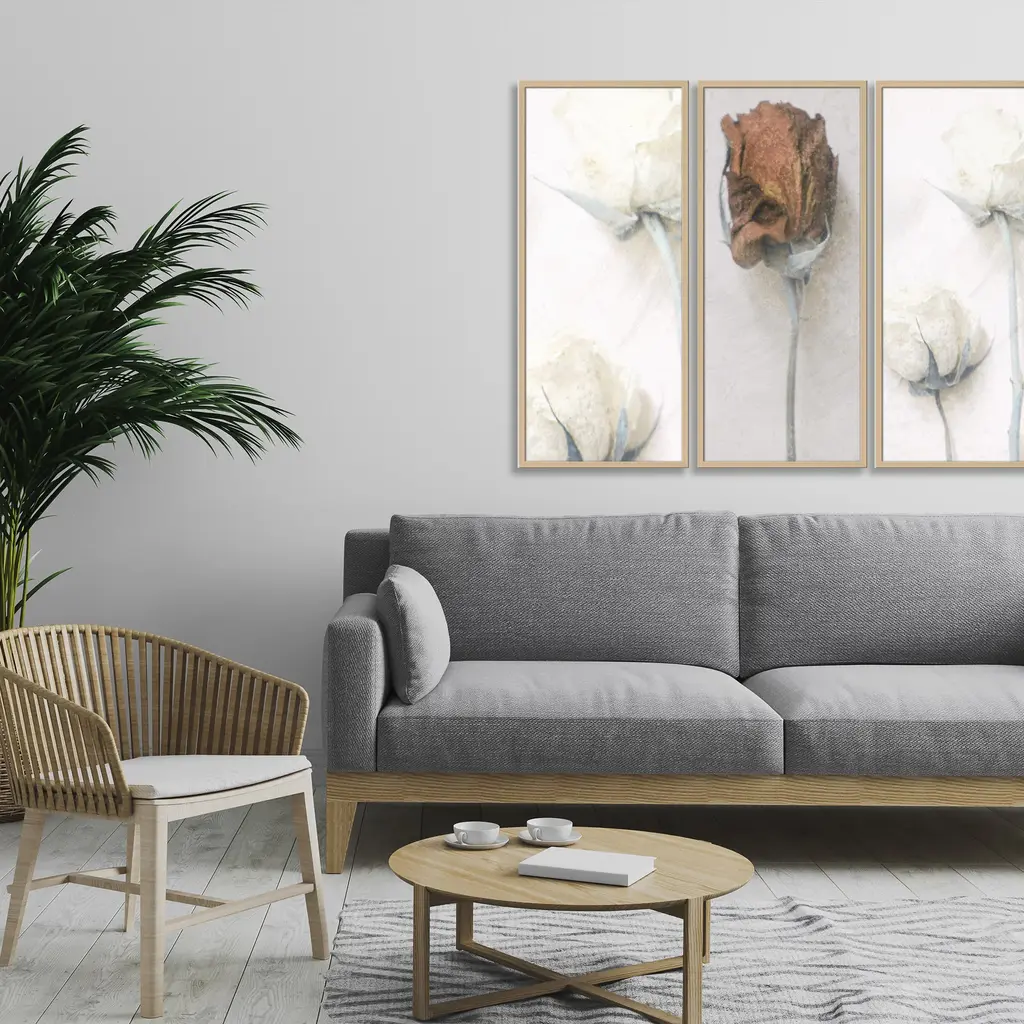 Add fresh florals to your space with Delphine Devos' "Memories of Modest Emotion" framed print three-piece wall art set. The delicate dried roses in shades of red and white add a classy, feminine touch to any room. Handcrafted in Chattanooga, Tennessee, by Ready2HangArt using a locally sourced artist print, finished with a rear hanger for simple installation.