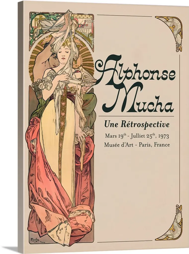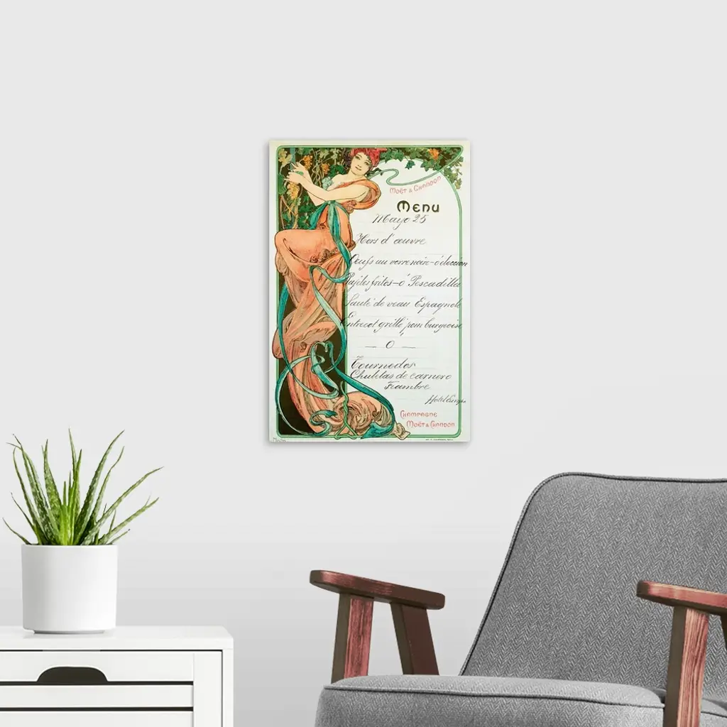 Menu printed by Champagne Moet and Chandon for a French specialty meal. Illustration by Alphonse Mucha (1860-1939).