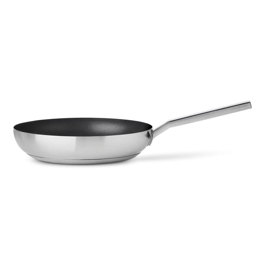 Mepra and Pininfarina have created STILE, a refined cookware collection for the lovers of Italian beauty. An unmistakable design in which pure lines find harmoniously their place in everyday life. The perfect balance between shape and function: Mepra solid experience and Pininfarina constant aesthetic research have created a cookware collection in the pursuit of timeless values: Beauty, Purity, Innovation. With its contemporary, essential look, STILE brings elegance in the kitchen without forgoing functionality, making the cooking experience even more satisfying. The pureness of the lines and the clean, essential geometries shape a collection in which function and style reach the perfect balance. The lid – characterized by rounded lines – recalls the pot shape, guaranteeing a perfect integration of elements and conveying the idea of a single, extremely compact body. The contrast between the shiny finish of the handles and the satin-finished exterior gives to the collection an unmistakable look. Not only stylistic research, but also attention to safety, ergonomics and functionality, make STILE an expression of the highest Italian quality and the proof of an innovative approach to design, focused on people’s wishes and needs. Since 1930 Pininfarina has been synonym of elegance and innovation. Thanks to its unmistakable style, this design house has given life to some of the most stunning cars in automobile history and objects that entered in the dreams of generations of people. More then 85 years in creating beauty allow to give life to unique objects touching every aspect of the human experience. “Italian style means sense of proportions, simplicity and harmony of line, such that after a considerable time, there is still something which is more alive than just a memory of beauty.” [Battista ‘Pinin’ Farina]. Made of the highest quality 18/10 Stainless Steel. From the first hand sketches to the final 3D models, the Stile collection has been conceived for the most refined and stylish home environments. The Pininfarina design team worked to give the product dynamic and sensual lines that get across a vivid impression of preciousness and, at the same time, lightness. The external matte finish surface enhances the elegance of the shape. The contrast of the glossy-matte finishing of the handles enhances the tri-dimensionality of the cooking tool. The graduated scale facilitates dosing the liquids. The heat-diffusing bottom with elevated thickness, heating surface to the edge of the body, guarantees an outstanding heat distribution. The round, non sharp-cornered bottom edge of each cooking tool avoids damage to induction and ceramic hobs. The ergonomic shape handle makes handling of the cooking tools easy. Handles are hollow, for better heat resistance. The handles have an oversized electric welding surface to maintain a perfect grip. The rounded edge of the lids collects condensation. Suitable for induction cooking. Dishwasher proof.