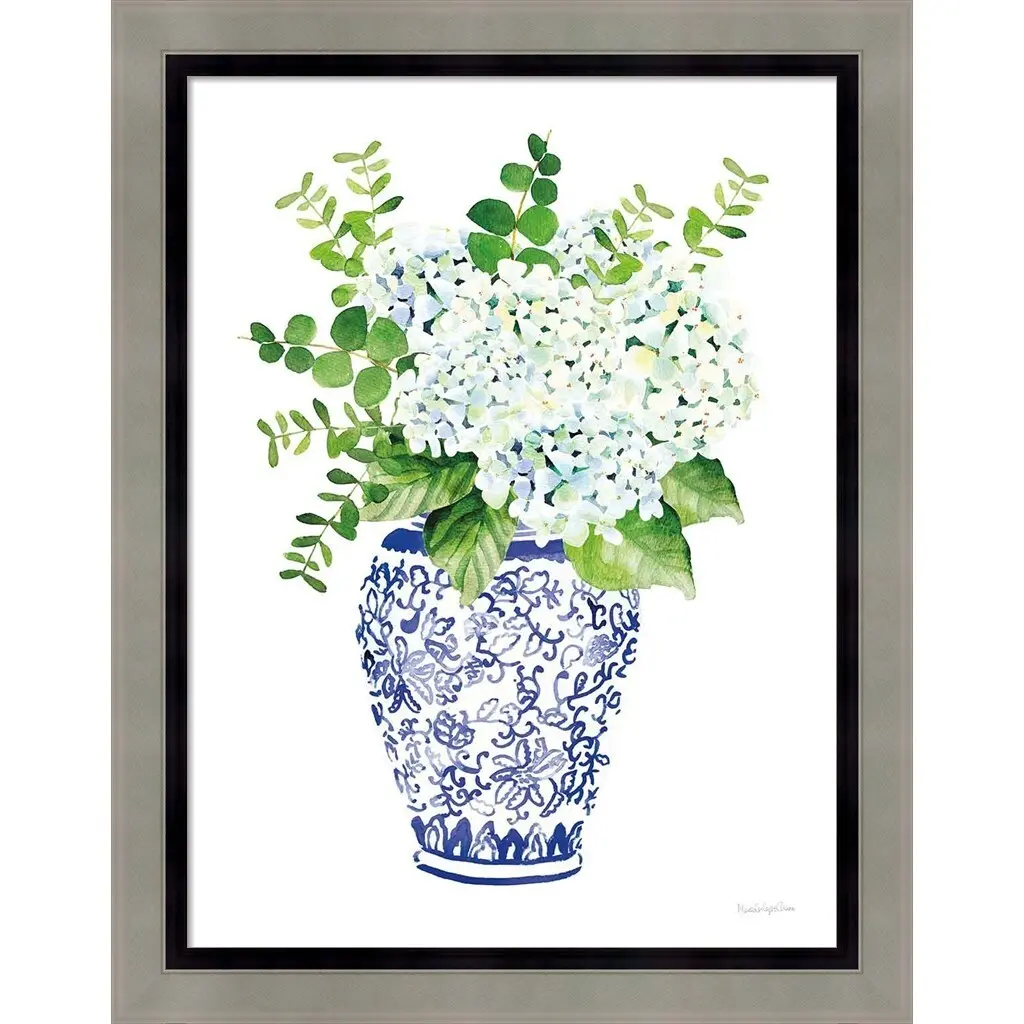 Chinoiserie Hydrangea I by Mercedes Lopez Charro is a high quality piece of framed artwork. The finished size of this piece is 14.5" X 18.5". It has a Contemporary Silver Wood w/Black Inner Accent frame and is finished with high quality Acrylic Plexiglass. 100% Satisfaction Guaranteed.