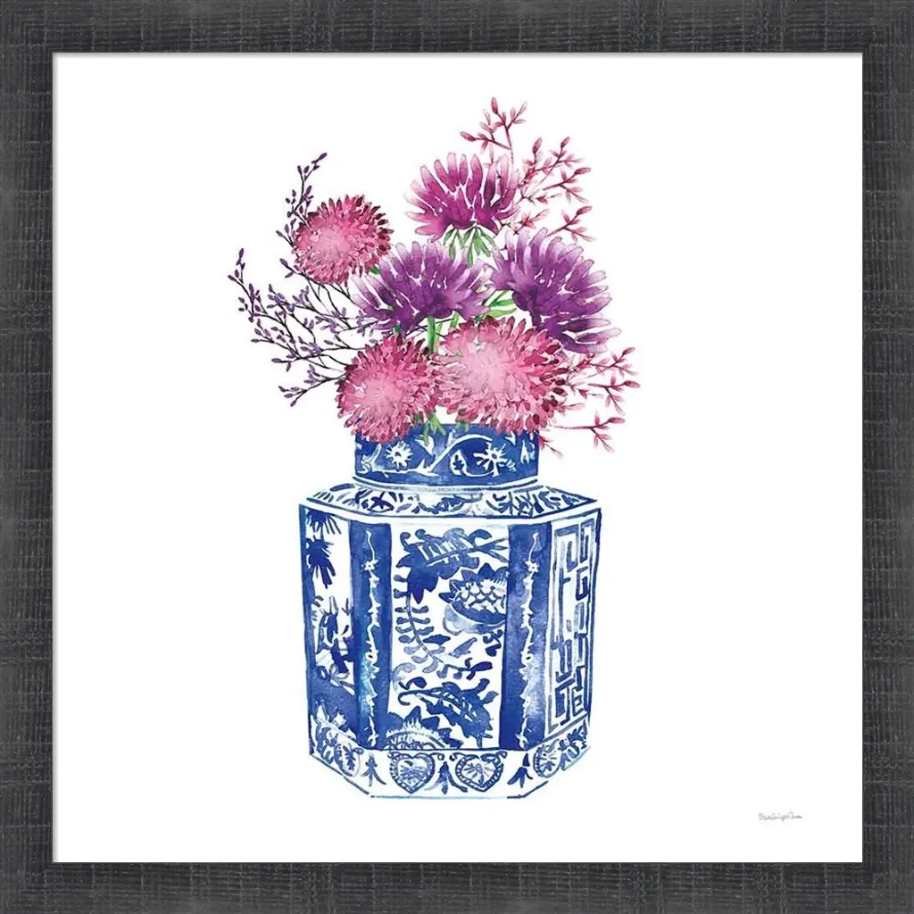 Chinoiserie Style III by Mercedes Lopez Charro is a high quality piece of framed artwork. The finished size of this piece is 17.5" X 17.5". It has a Rustic Grey Distressed frame and is finished with high quality Acrylic Plexiglass.. 100% Satisfaction Guaranteed.