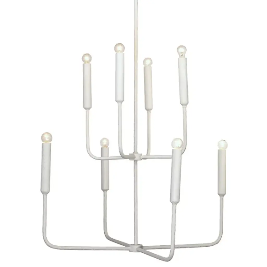 Like a sketch from an artist, cool lines are realized in the 3-dimensional space as a gorgeous suspended piece. The Mercer Chandelier from Jamie Young Co. goes all in with a clean, sculptural design, using tried and true artistic techniques that give it a signature surface texture. The multi-tier structure is made up of soft curves and crisp lines that culminate into long, slender lamp holders. Its framework is layered with plaster than glazed with gesso, giving it a crafted look, you can feel. Its light is silhouetted with charming spherical bulbs that nestle themselves beautifully over the piece.