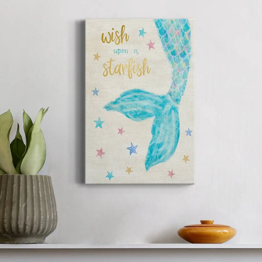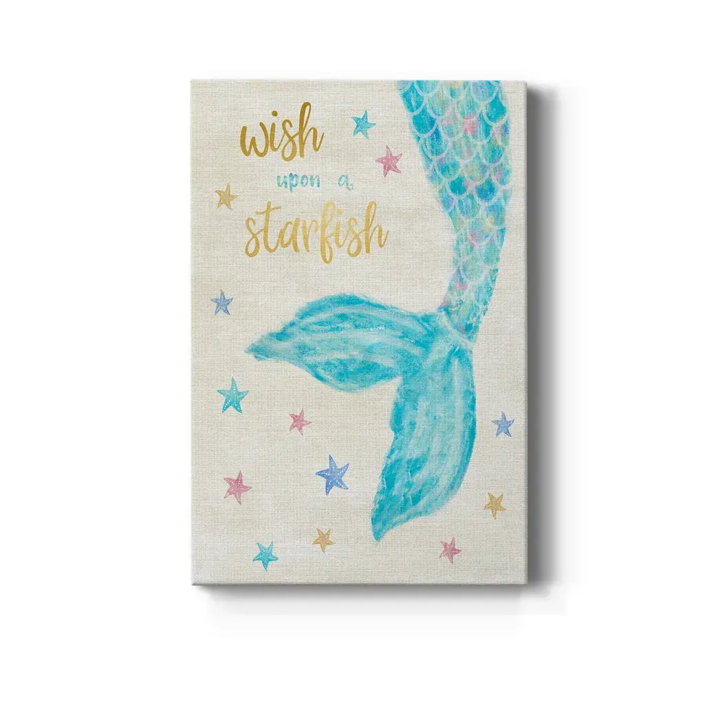 Mermaid Wish Premium Gallery Wrapped Canvas - Ready to Hang A premium hand stretched gallery wrapped canvas print created to last. Featuring a beveled a solid wood stretcher bar, each piece comes ready to hand 5 SIZES AVAILABLE 8''X12'' - Overall Size 16'X20'' - Overall Size 24''x32'' - Overall Size 30''x40'' - Overall Size 36''x48'' - Overall Size Each piece is made to order. Built to Last Each piece comes ready to hang Solid wood stretcher Fade and Water resistant Made domestically
