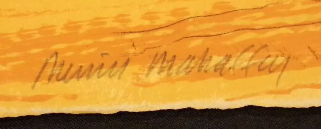 Realistic unframed limited edition lithograph art print of a waterfall in Arizona by American artist Merrill Mahaffey. Hand signed, titled and numbered by the artist in pencil. Size: 30" x 22". Edition size of 100. Circa 1980s. Condition is Mint. 100 percent guarantee of authenticity. Certificate of Authenticity & appraisal is included. MAKE AN OFFER! Bio: Merrill Mahaffey (b. 1937) Characterized by a combination of realism and abstraction, the paintings of Merrill Mahaffey are concerned with the very elements of landscape. Art historian Donald Hagerty put it well when he said that, for Mahaffey, ". . . rocks are the bones of the earth, and water its spiritual arteries. " A native of the Southwest, Mahaffey studied at the California College of Arts and Crafts, Sacramento State University, and Arizona State University. He took his first river trip through Grand Canyon in 1980 and has since made many more. His paintings of Grand Canyon reflect his fascination with the Colorado River. In 1982 he and his wife organized a river trip through Grand Canyon for artists. The resulting paintings were exhibited at the Scottsdale Center for the Arts. Mahaffey also paints scenes of Utah's Canyonlands, Canyon de Chelly, and the Rocky Mountains. He was artist-in-residence in Rocky Mountain National Park in 1989. His paintings are in the collections of the Smithsonian Museum of American Art, the Phoenix Art Museum, the Metropolitan Museum of Art in New York, the Denver Art Museum, and many private corporations.