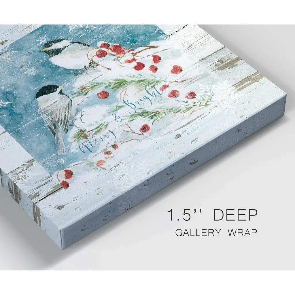 Merry and Bright-Premium Gallery Wrapped Canvas - Ready to Hang A premium hand stretched gallery wrapped canvas print created to last. Featuring a beveled a solid wood stretcher bar, each piece comes ready to hand 5 SIZES AVAILABLE 10''X10'' - Overall Size 16''x16'' - Overall Size 24''x24'' - Overall Size 32''x32'' - Overall Size 40''x40'' - Overall Size Each piece is made to order. Built to Last Each piece comes ready to hang Solid wood stretcher Fade and Water resistant Made domestically