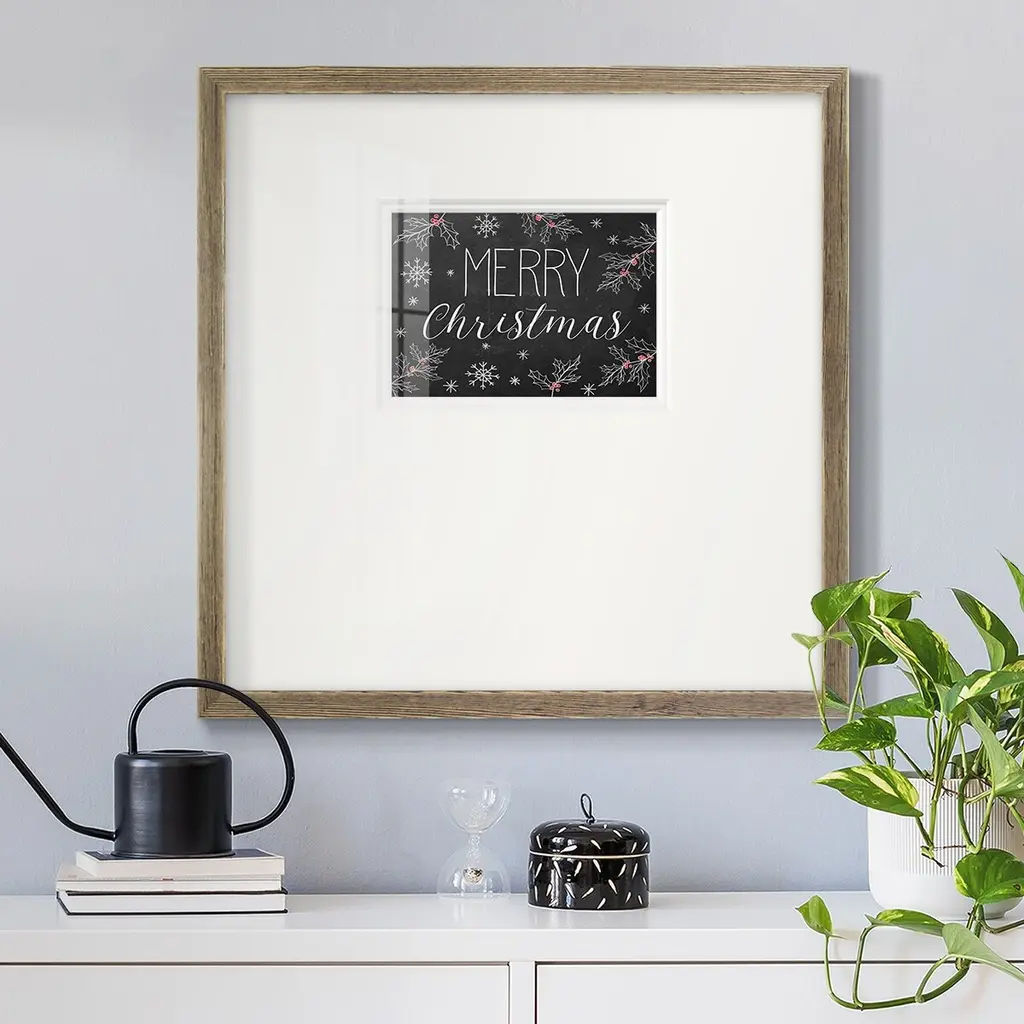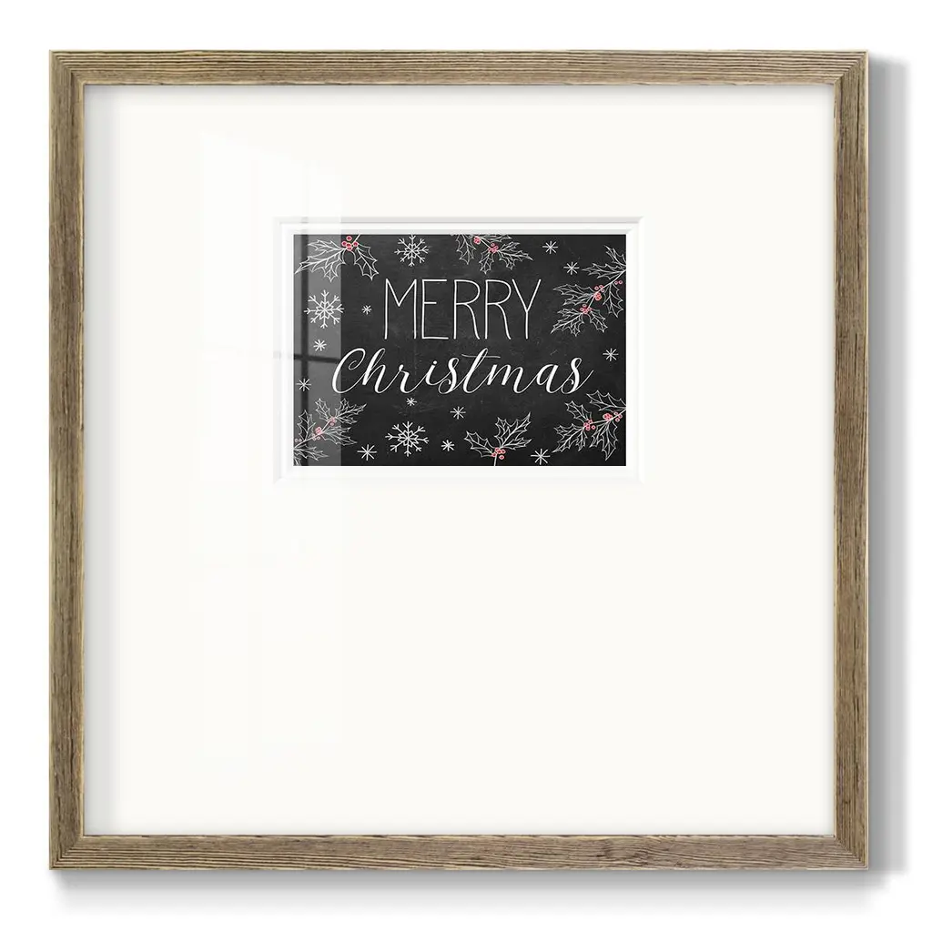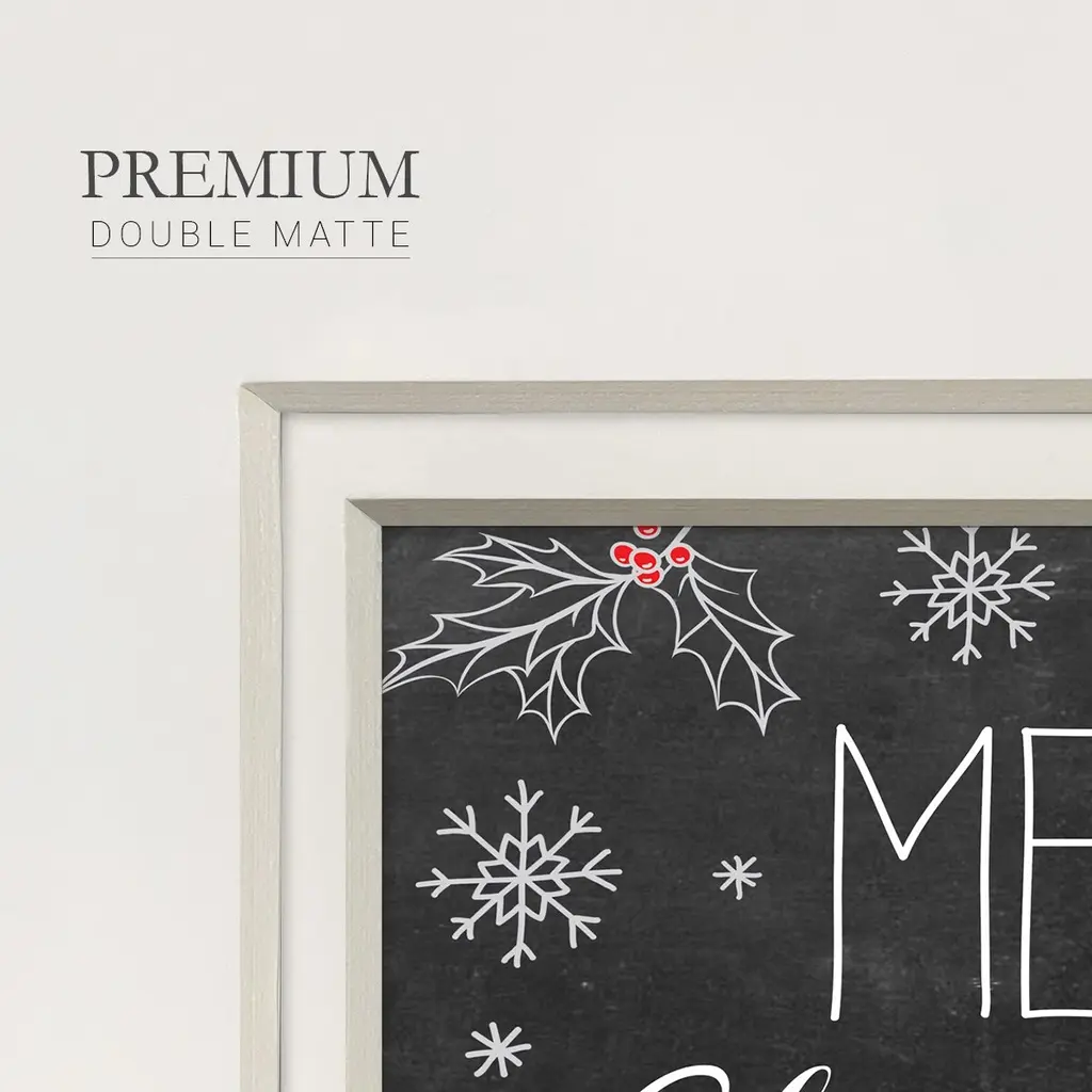 Merry Christmas ChalkboardPremium Framed Print A framed cold pressed paper print featuring superior double matting and quality frame. 2 SIZES AVAILABLE 16''X16''' - Overall Size 20''X20''' - Overall Size Each piece is made to order. Each piece comes with hanging hardware. Made in the USA Ready to Hang Giclee Paper Print Plexiglass Beveled Matt Board Double Matte Board