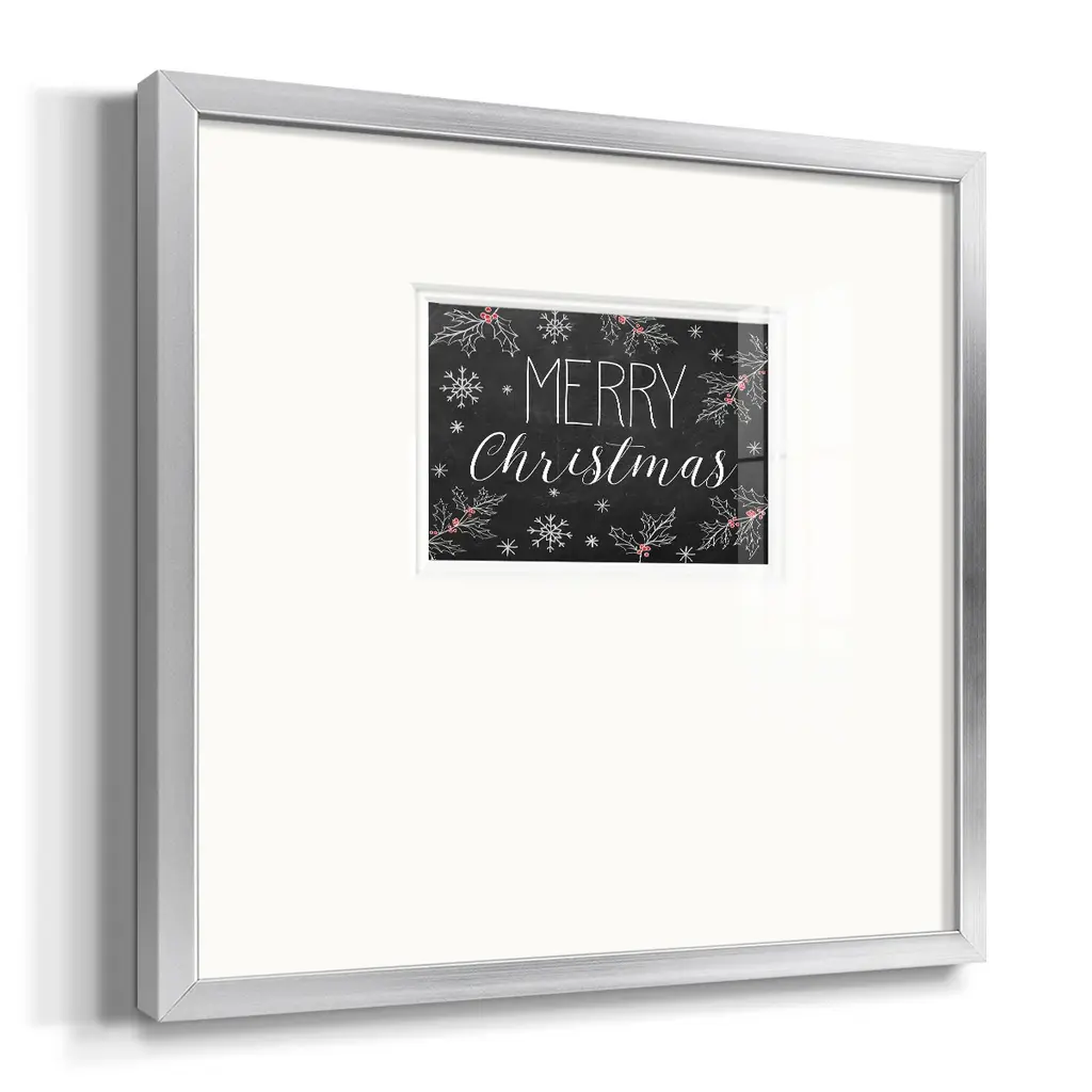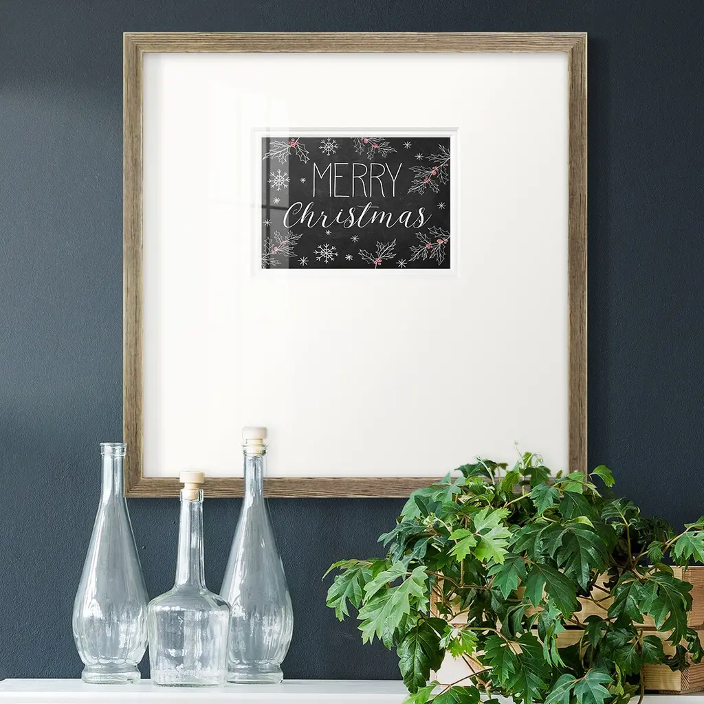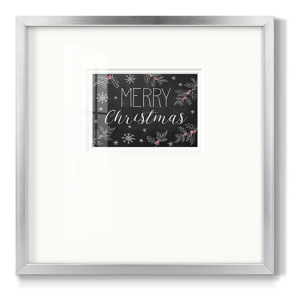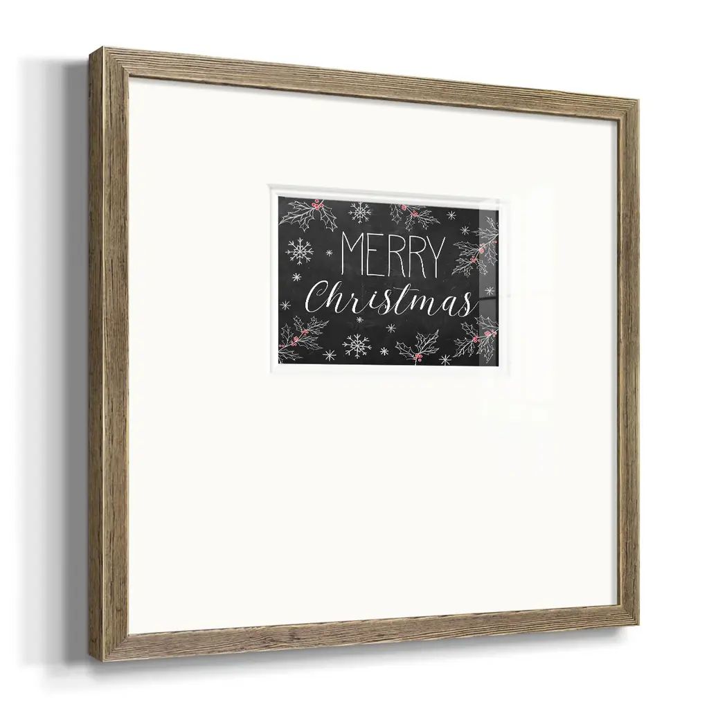 Merry Christmas ChalkboardPremium Framed Print A framed cold pressed paper print featuring superior double matting and quality frame. 2 SIZES AVAILABLE 16''X16''' - Overall Size 20''X20''' - Overall Size Each piece is made to order. Each piece comes with hanging hardware. Made in the USA Ready to Hang Giclee Paper Print Plexiglass Beveled Matt Board Double Matte Board