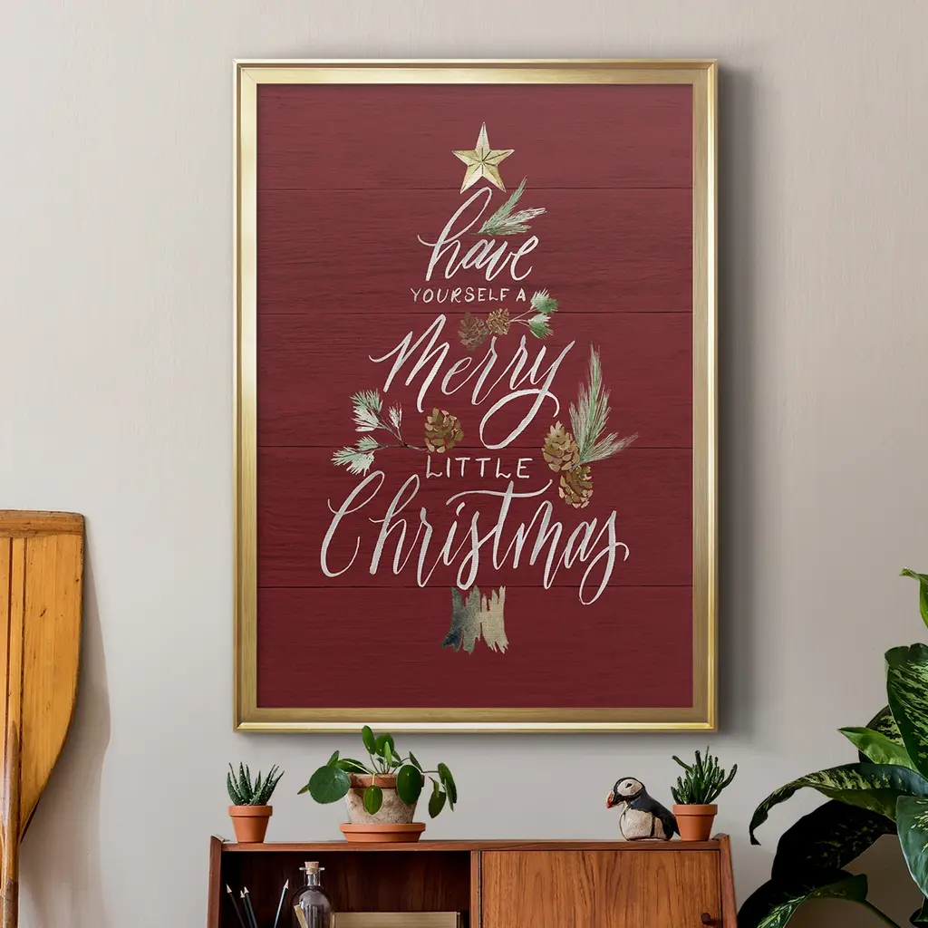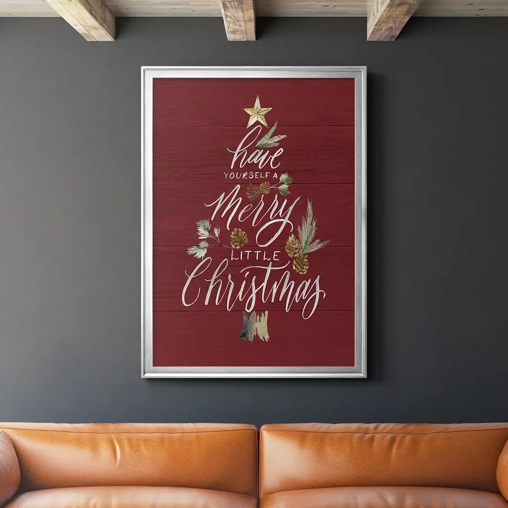 Merry Little Christmas Premium Framed Print - Ready to Hang A Premium Framed Print created to last. Framed in distressed wood and available in an array of sizes and colors Featuring a beveled a solid wood stretcher bar, each piece comes ready to hand 4 SIZES AVAILABLE 30.5''X42.5'' - Overall Size 26.5'X36.5'' - Overall Size 22.5''x30.5'' - Overall Size 18.5''x24.5'' - Overall Size Each piece is made to order. Each piece comes with hanging hardware. Made in the USA Ready to Hang