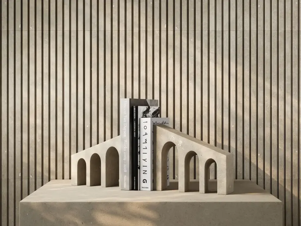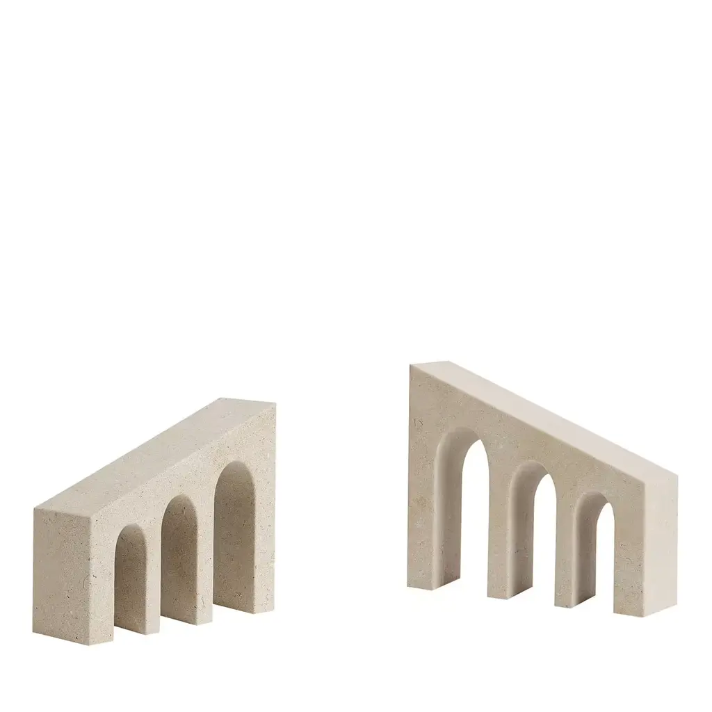 Metafisica bookends are a three-dimensional representation and a clear reference to the arches in Giorgio de Chirico's paintings, distinguished by accentuated perspectives. METAFISICA bookends are an homage to the Twentieth Century art and masters.