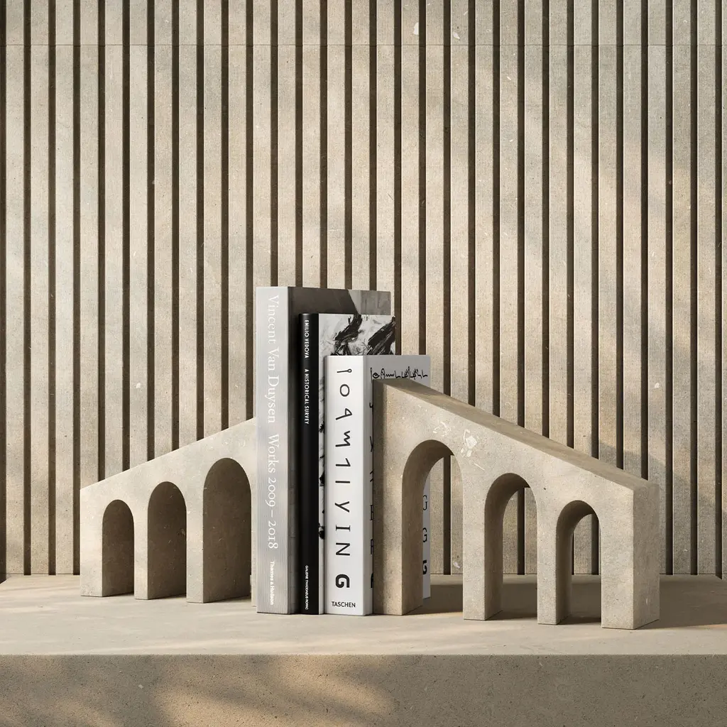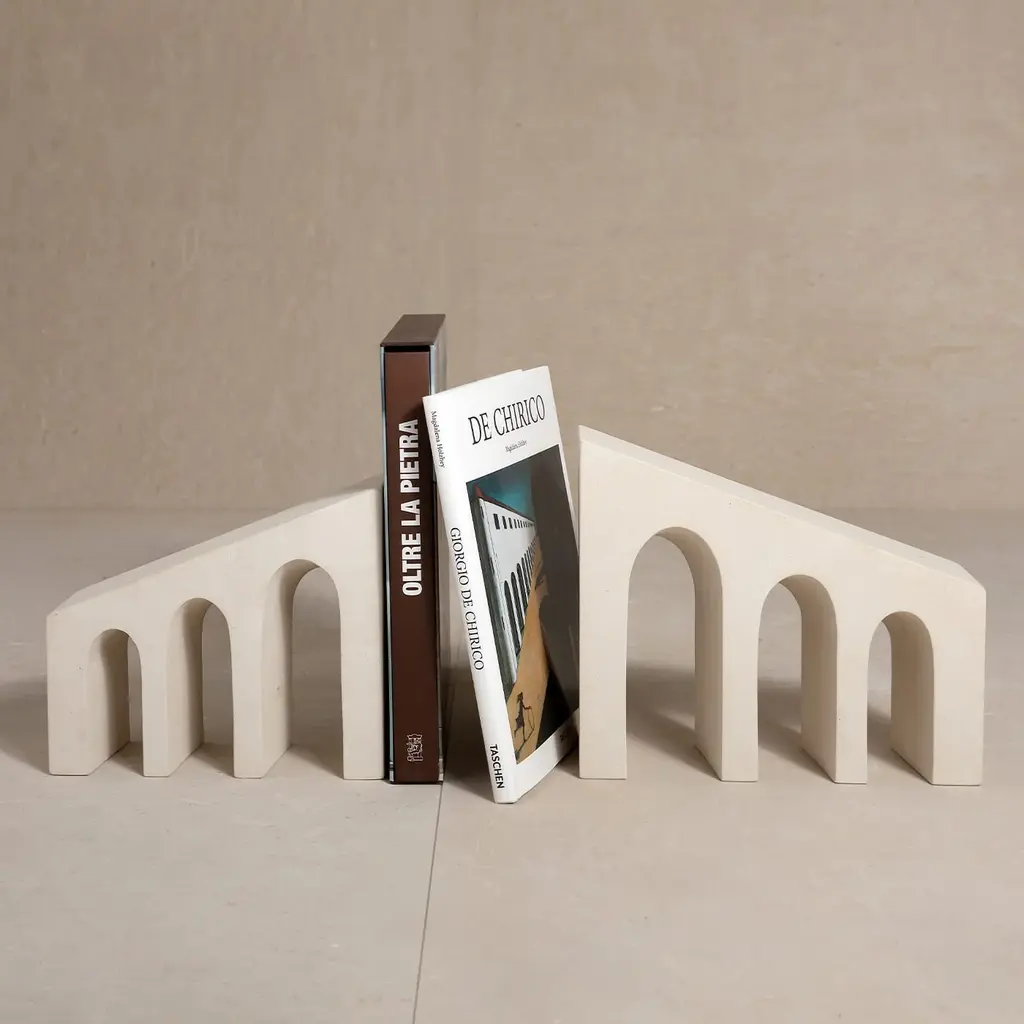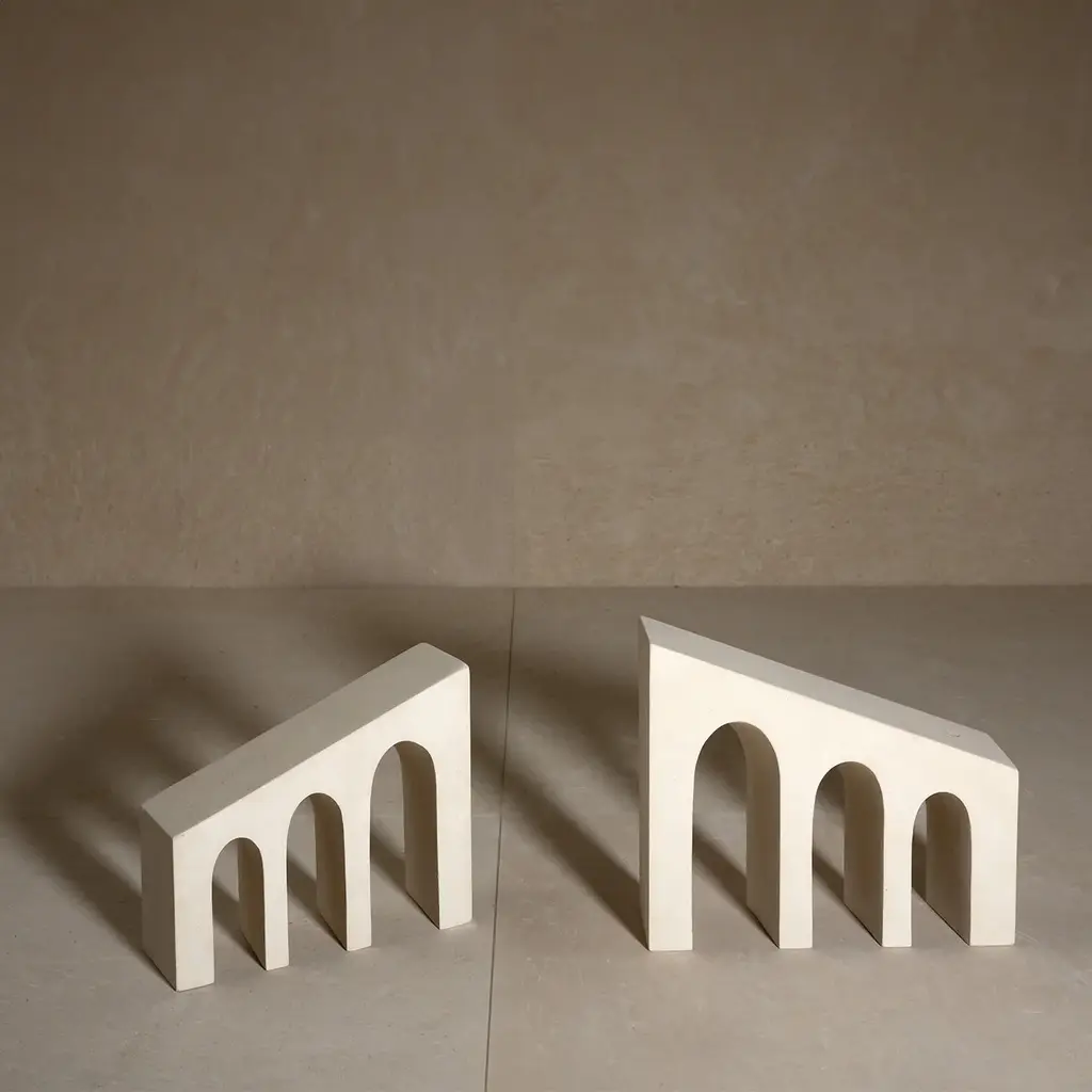METAFISICA bookends are a three-dimensional representation and a clear reference to the arches in Giorgio de Chirico's paintings, distinguished by accentuated perspectives. METAFISICA bookends are an homage to Twentieth Century art and masters. Designed by Apospersano.