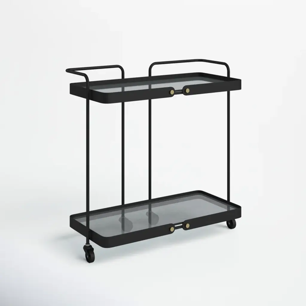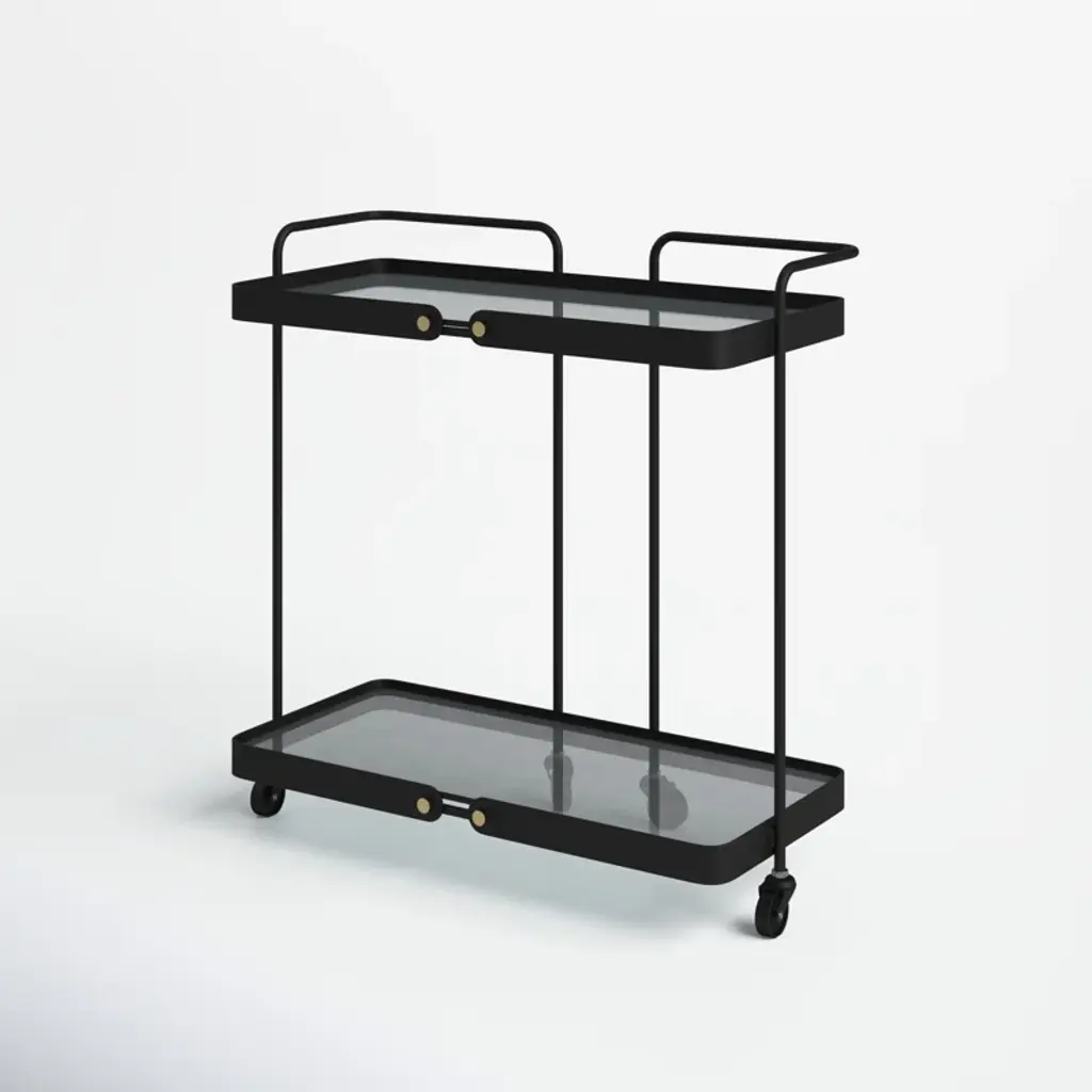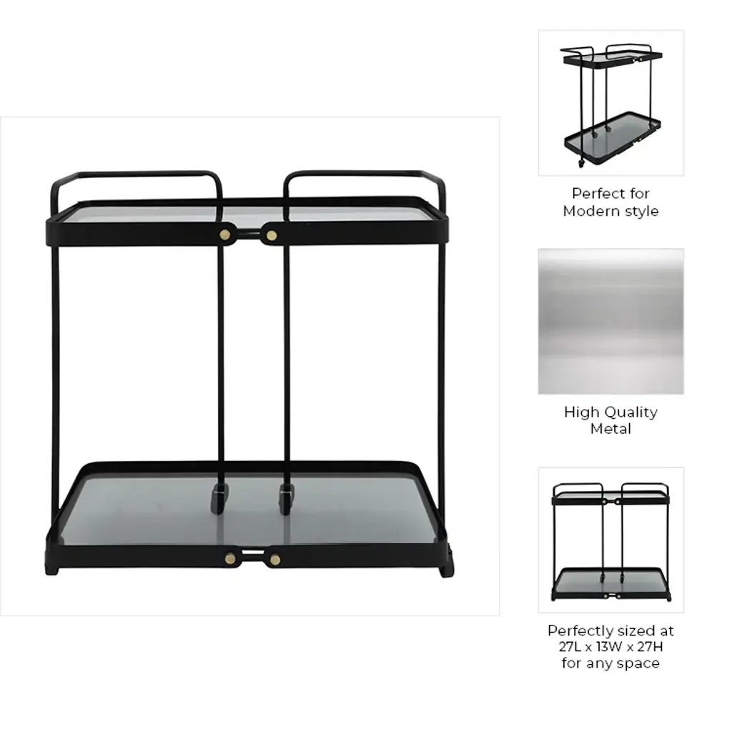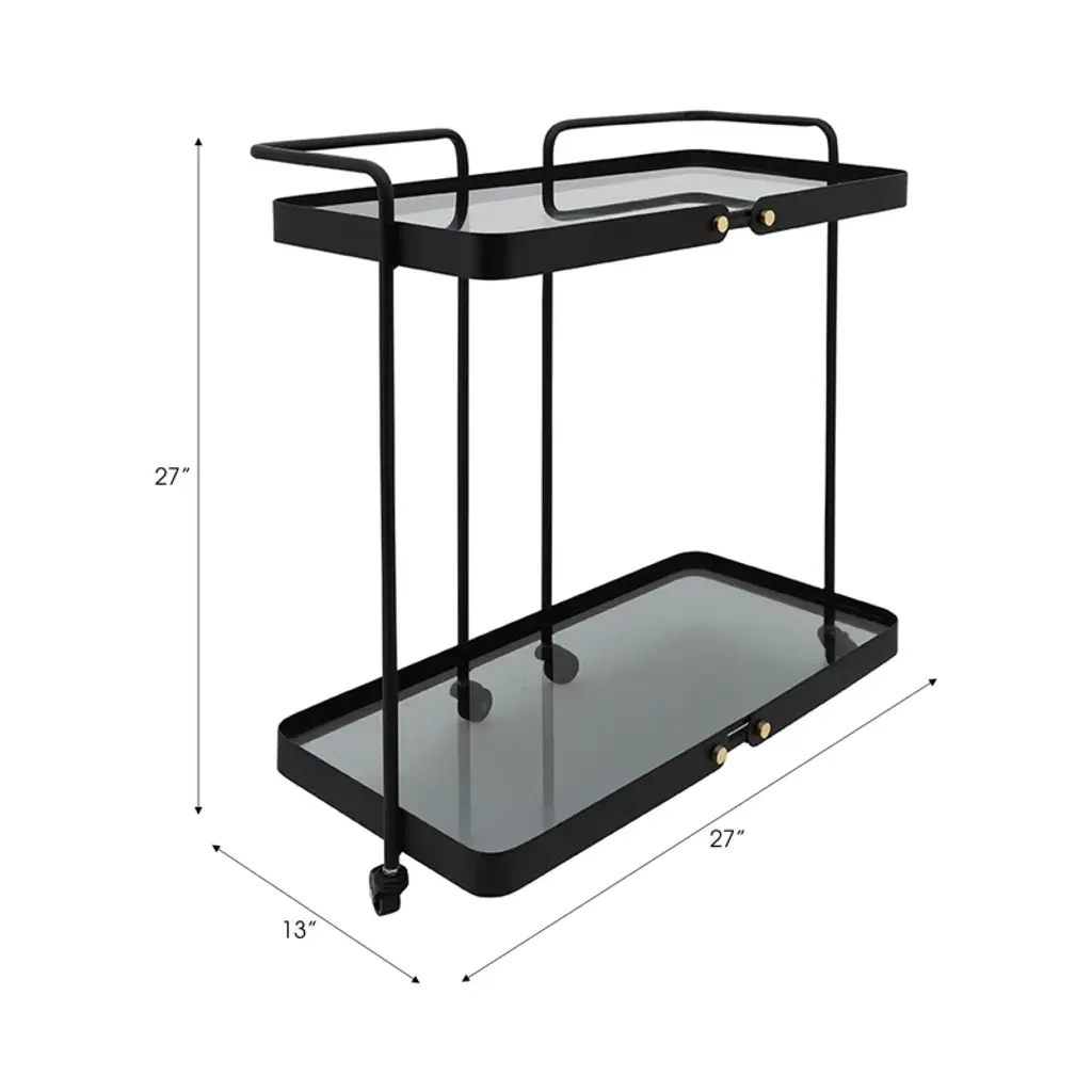 Metal, 27"h 2-Layered Bar Cart With Smokey Glass, Bl 27.0"h - 27.0" X 13.0" X 27.0"