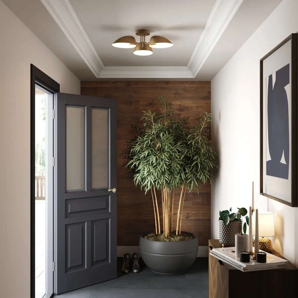 Metal 3-Arm Flush Mount Ceiling Light Brass