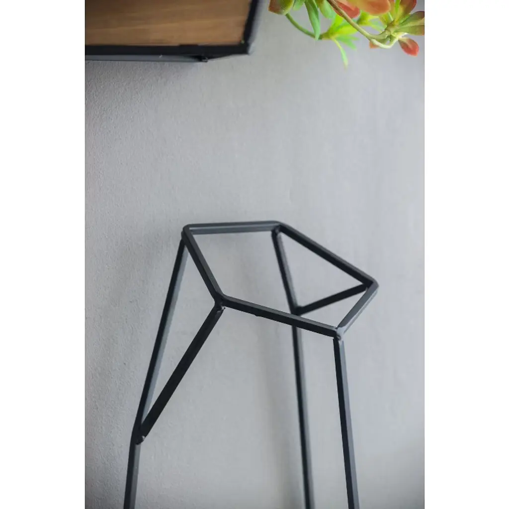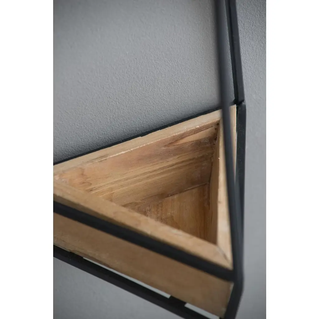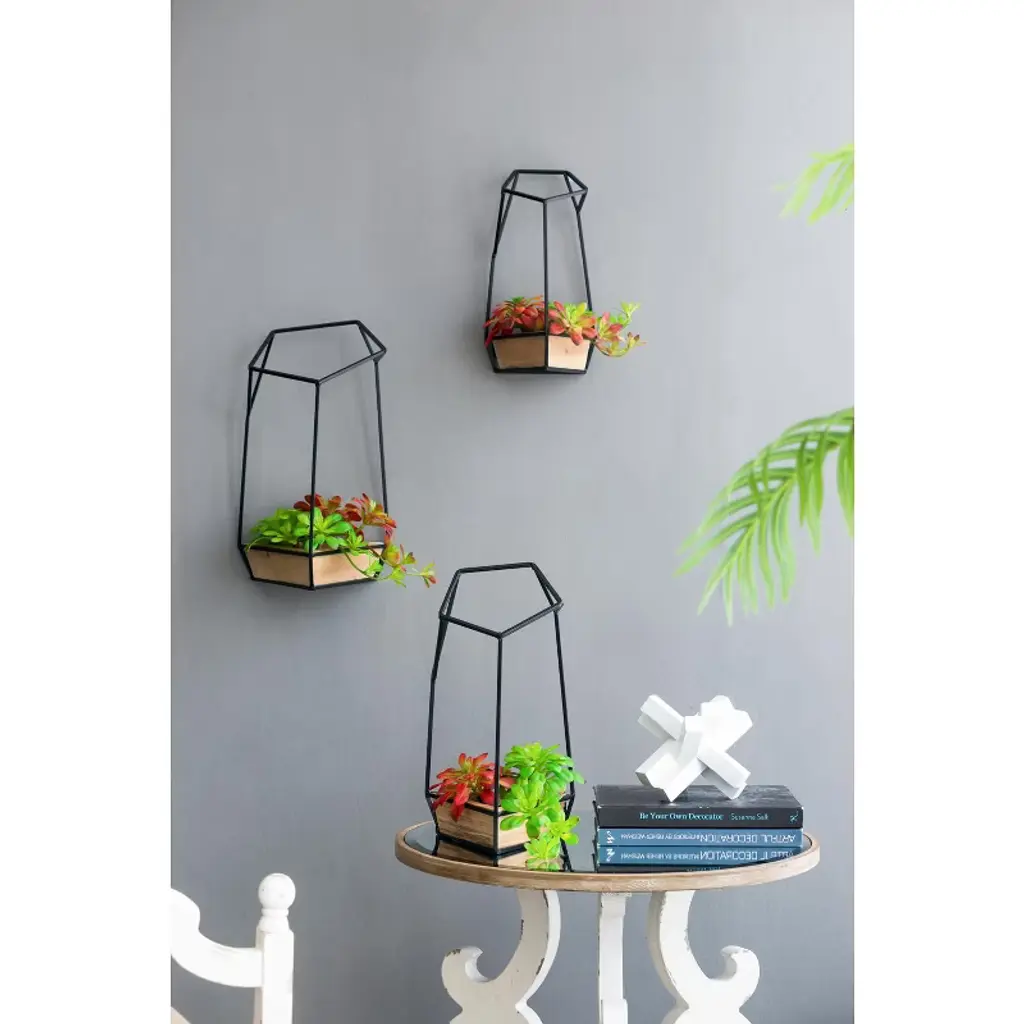Showcase your favorite succulents and small plants in modern style with this striking set of three geometric wall planters. Each planter features a natural fir wood container nestled within an angular black frame, creating a bold architectural accent for your walls. The contrast between warm wood and industrial metal adds visual interest while seamlessly complementing a wide range of interior aesthetics—from minimalist and Scandinavian to boho and contemporary. Lightweight and easy to hang, these planters create a dynamic vertical garden display that's perfect for living rooms, entryways, kitchens, or offices.