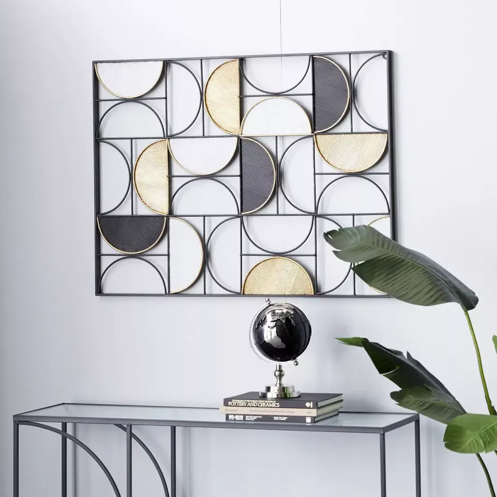 Metal Geometric Half Moon Wall Decor With Gold Detailing Black - Olivia & May
