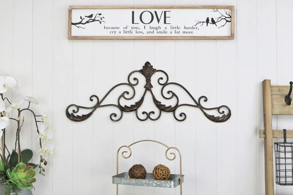 Add a touch of classic sophistication to any space of your home with the Metal Scroll Wall Swag. Inspired by the rich hues and bold design of timeless, traditional style, this Metal Scroll Wall Swag enhances and elevates any existing wall decor. Captivating and regal, this metal work of art features delicate scrolls and detailed metal accents that create the perfect balance of understated elegance. A lovely addition to your bedroom, living room or dining room, the Metal Scroll Wall Swag is both stylish and versatile.