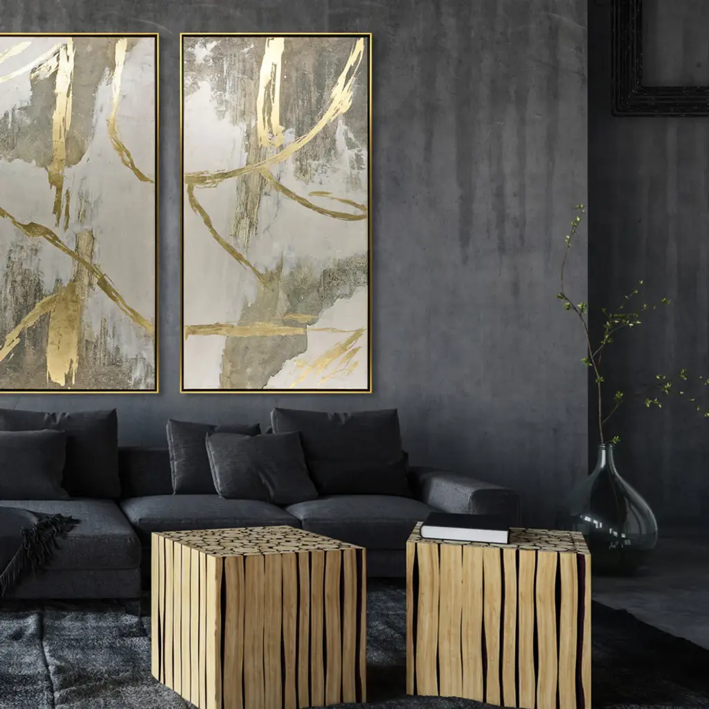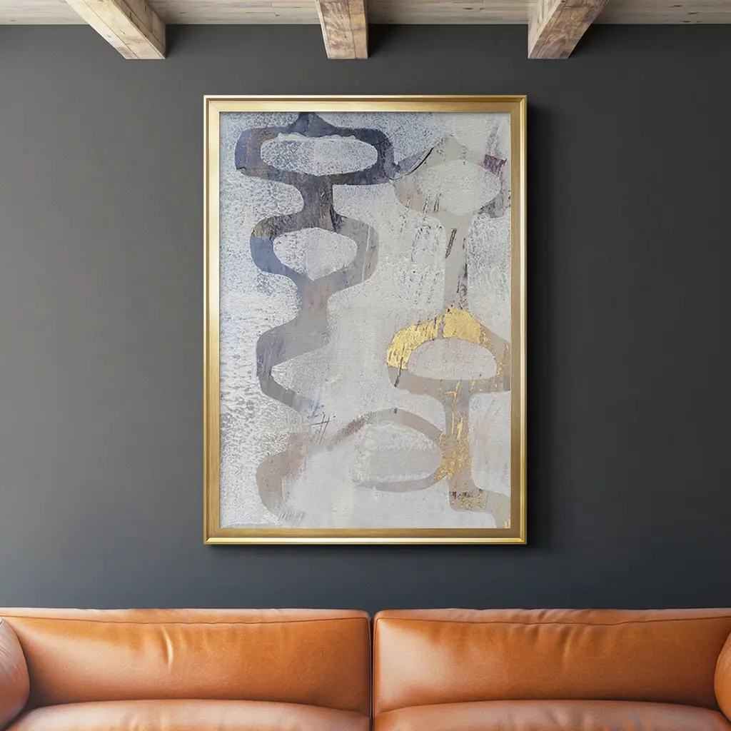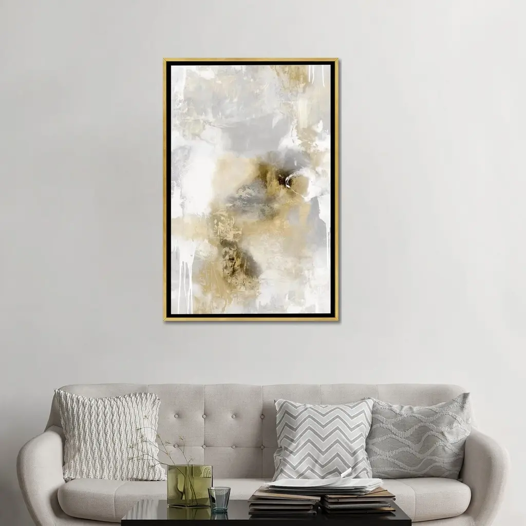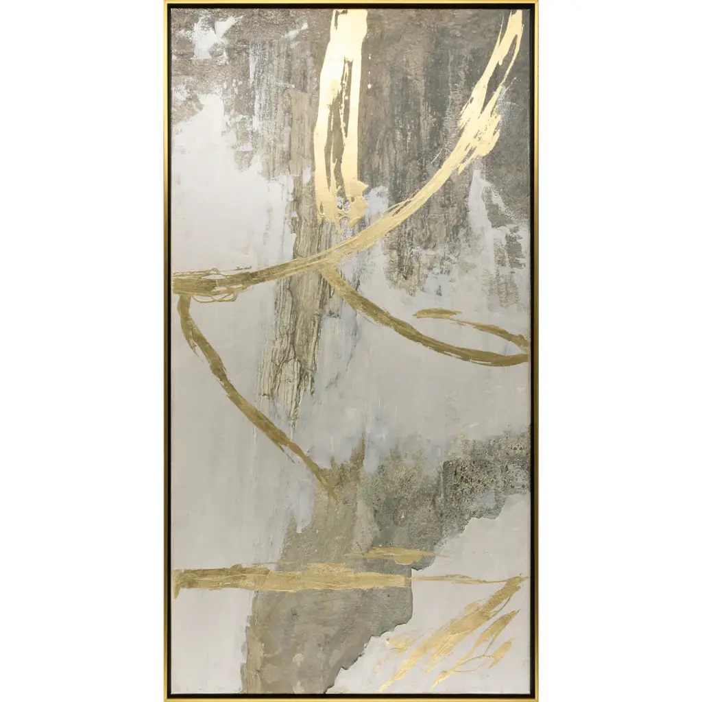 Exclusive hand embellished giclee on canvas with gold leaf. Mounted in an antique gold wood floater frame.