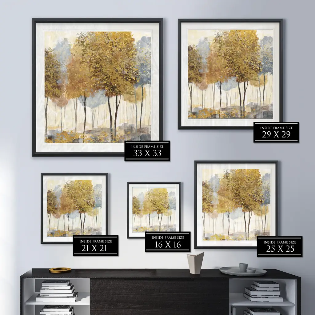 Metallic Forest II -Framed Giclee Print A premium framed giclee print Printed using the last archival inks. Each print is carefully printed and framed by hand. Each piece features a 2'' Beveled matt board, acrylic glass and comes ready to hand. 5 SIZES AVILABLE 16''x16''- Overall Size 24''x22''- Overall Size 28''x28''' - Overall Size 32''x32''' - Overall Size 38''x38'' - Overall Size ** Overall size may vary slightly from piece to piece Each piece is made to order. Built to Last Each piece comes ready to hang Archival Ink 2'' Matt Board Assembled by hand in the America