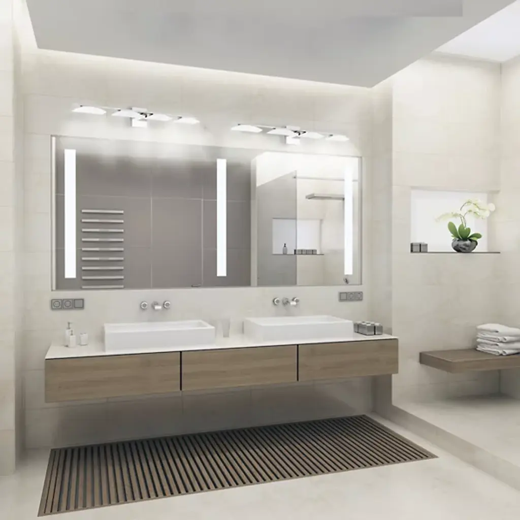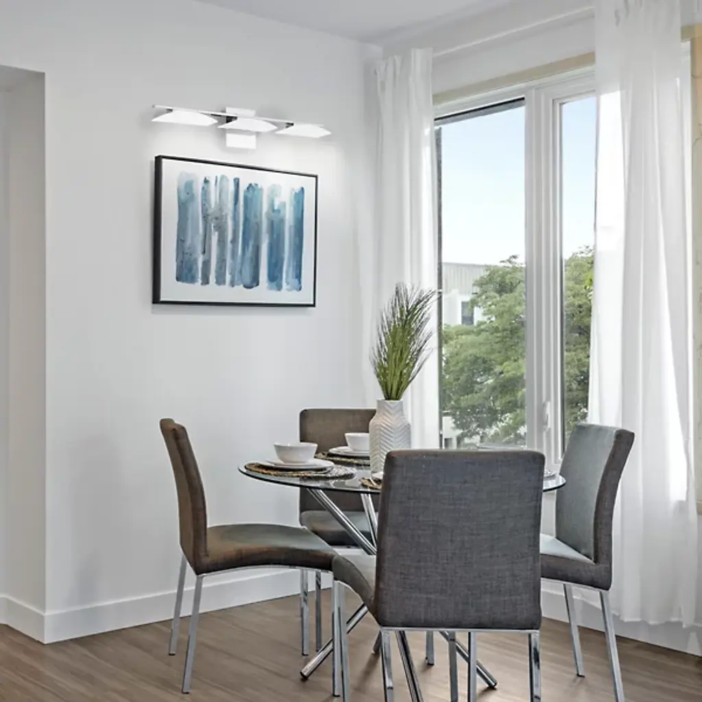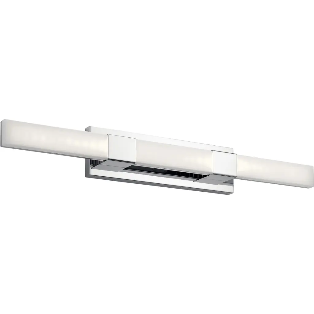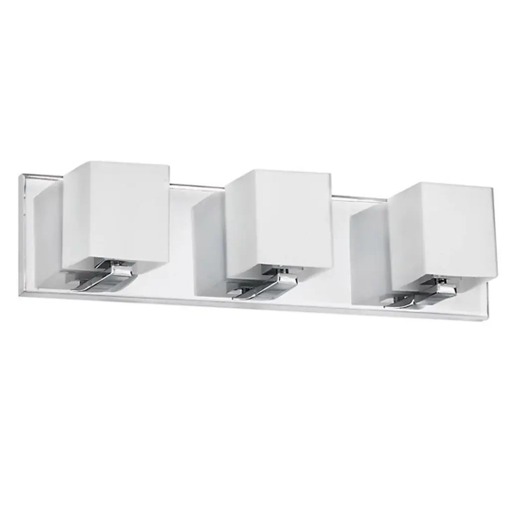 A unique lighting look for contemporary bathrooms. The Metrass 3 LED Vanity Light by Eglo has a long and slender steel frame, along which are arranged several shallow, soap dish-shaped acrylic shades. The shades both house the integrated LEDs and work to evenly diffuse the light they produce. This vanity light can be installed with the shades facing up or down as needed over a mirror or anywhere else in a modern bathroom or vanity area.