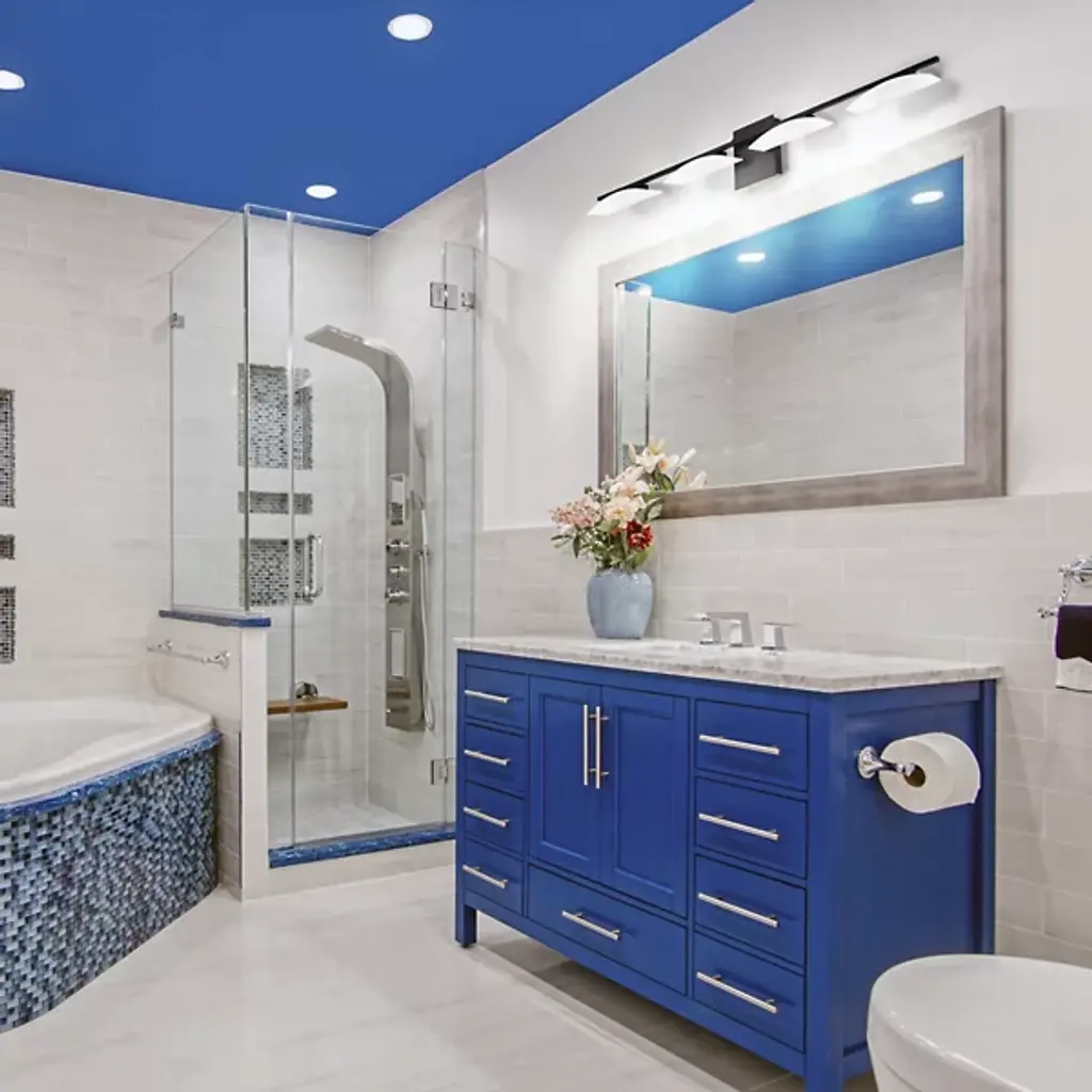A unique lighting look for contemporary bathrooms. The Metrass 3 LED Vanity Light by Eglo has a long and slender steel frame, along which are arranged several shallow, soap dish-shaped acrylic shades. The shades both house the integrated LEDs and work to evenly diffuse the light they produce. This vanity light can be installed with the shades facing up or down as needed over a mirror or anywhere else in a modern bathroom or vanity area.